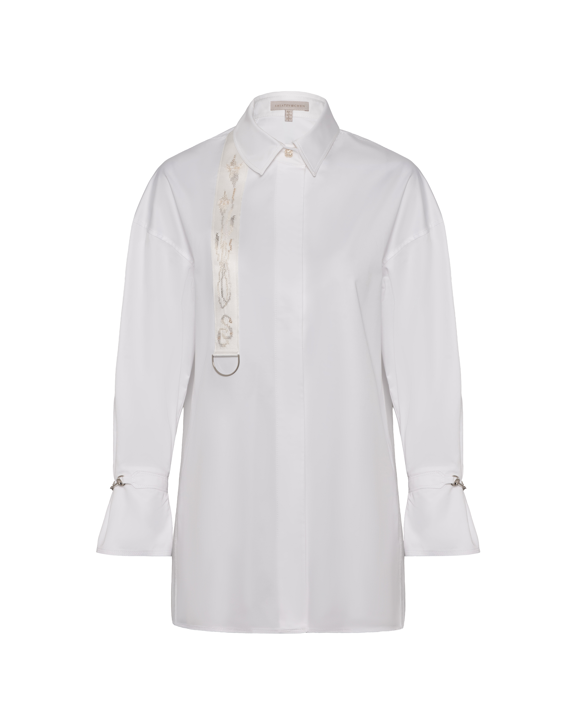 Unstill Collection Embroidered-trimmed flared-sleeve shirt