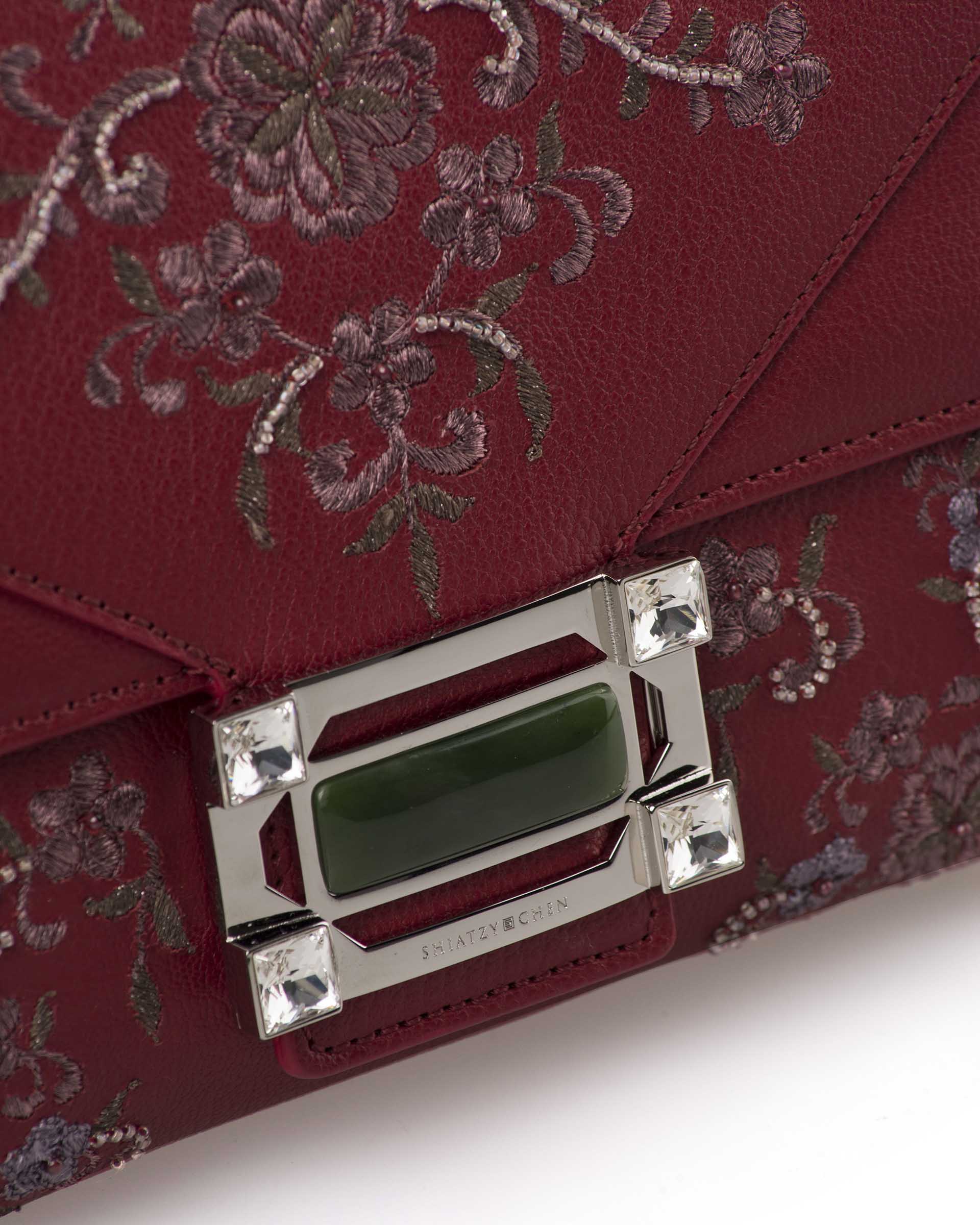 Oriental Beauty Collection Classic Jade Clasp Dark Red Square Handbag