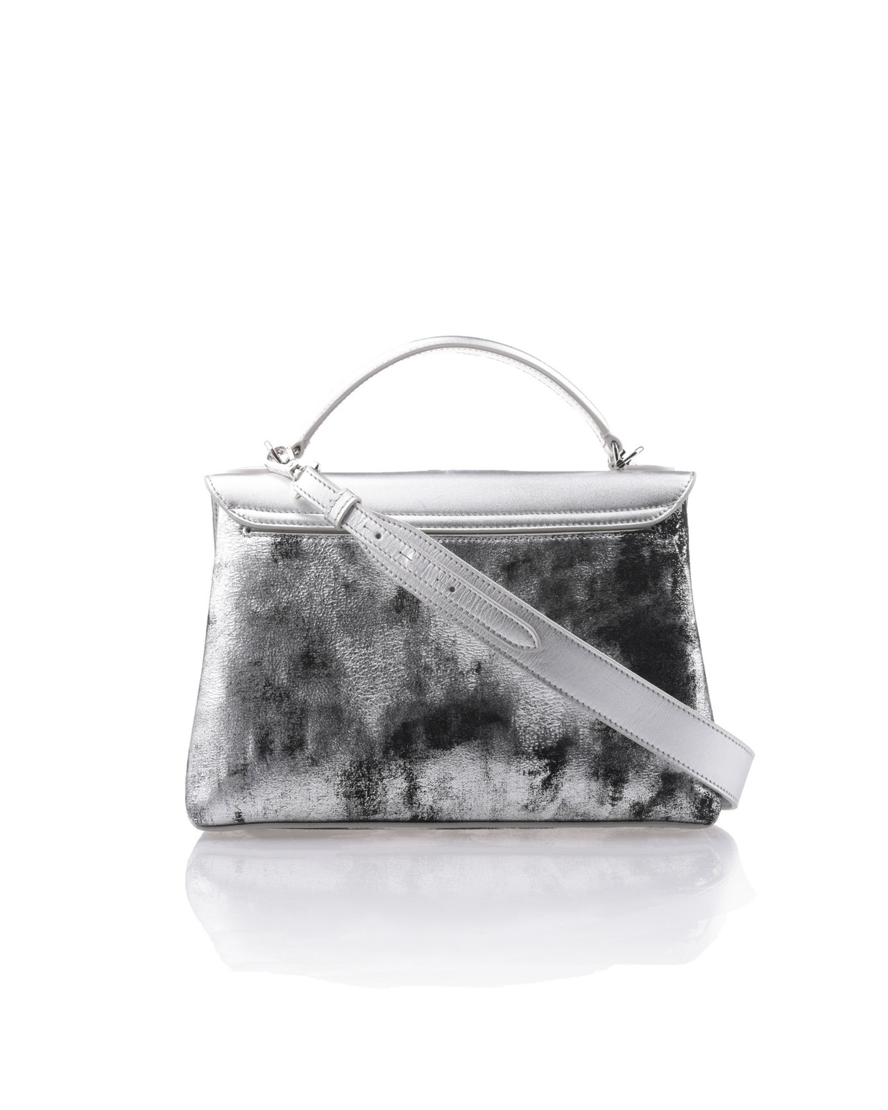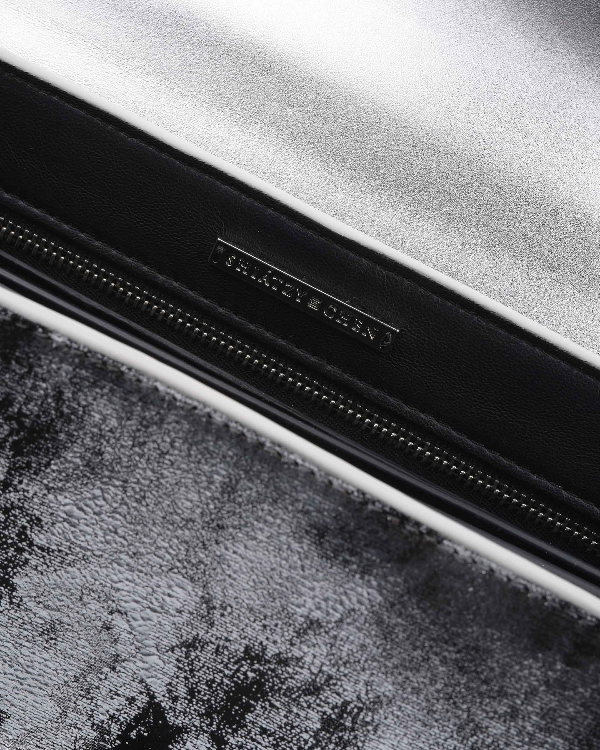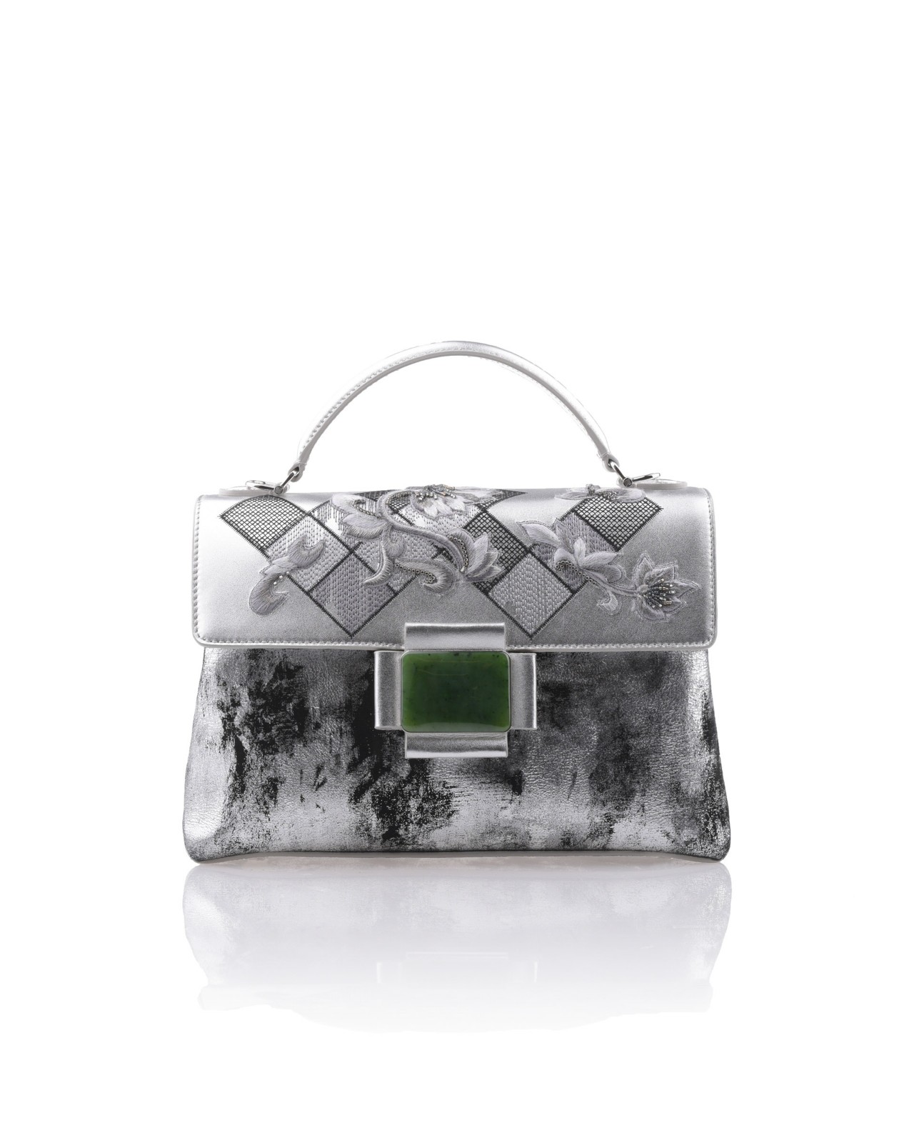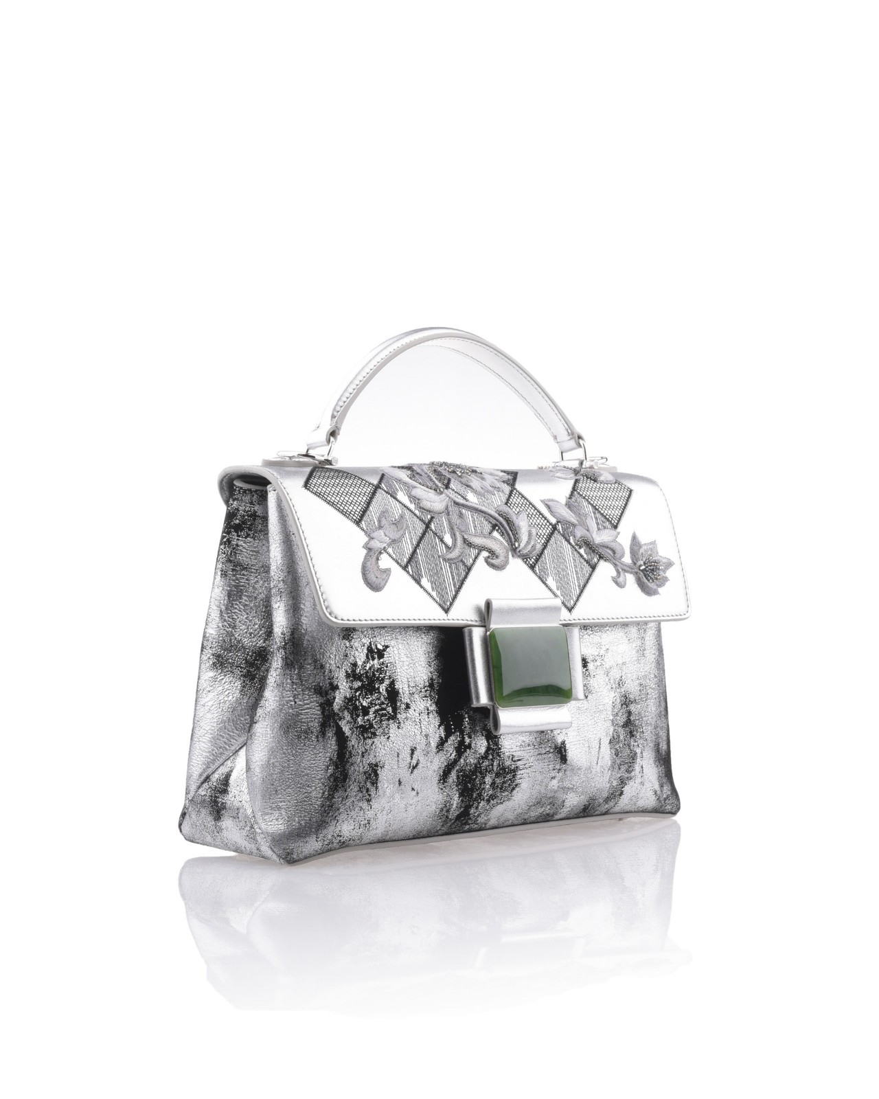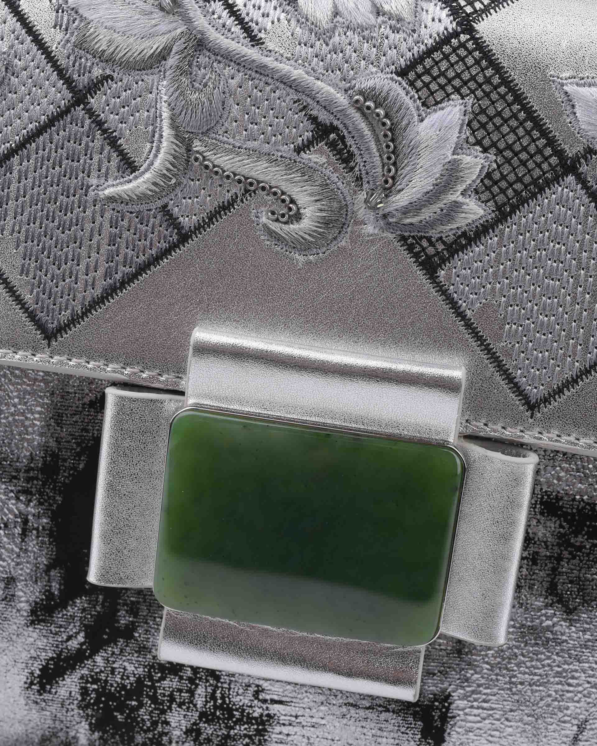 Geometry Collage Collection Silver Leather And Suede Handbag With Jade Buckle