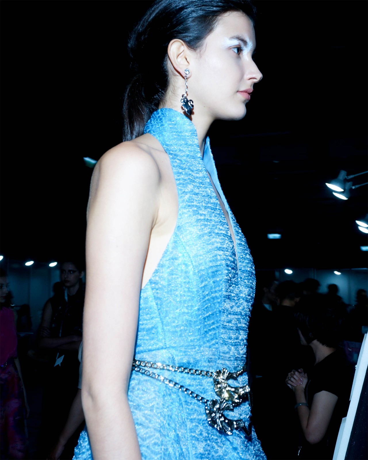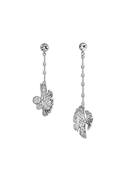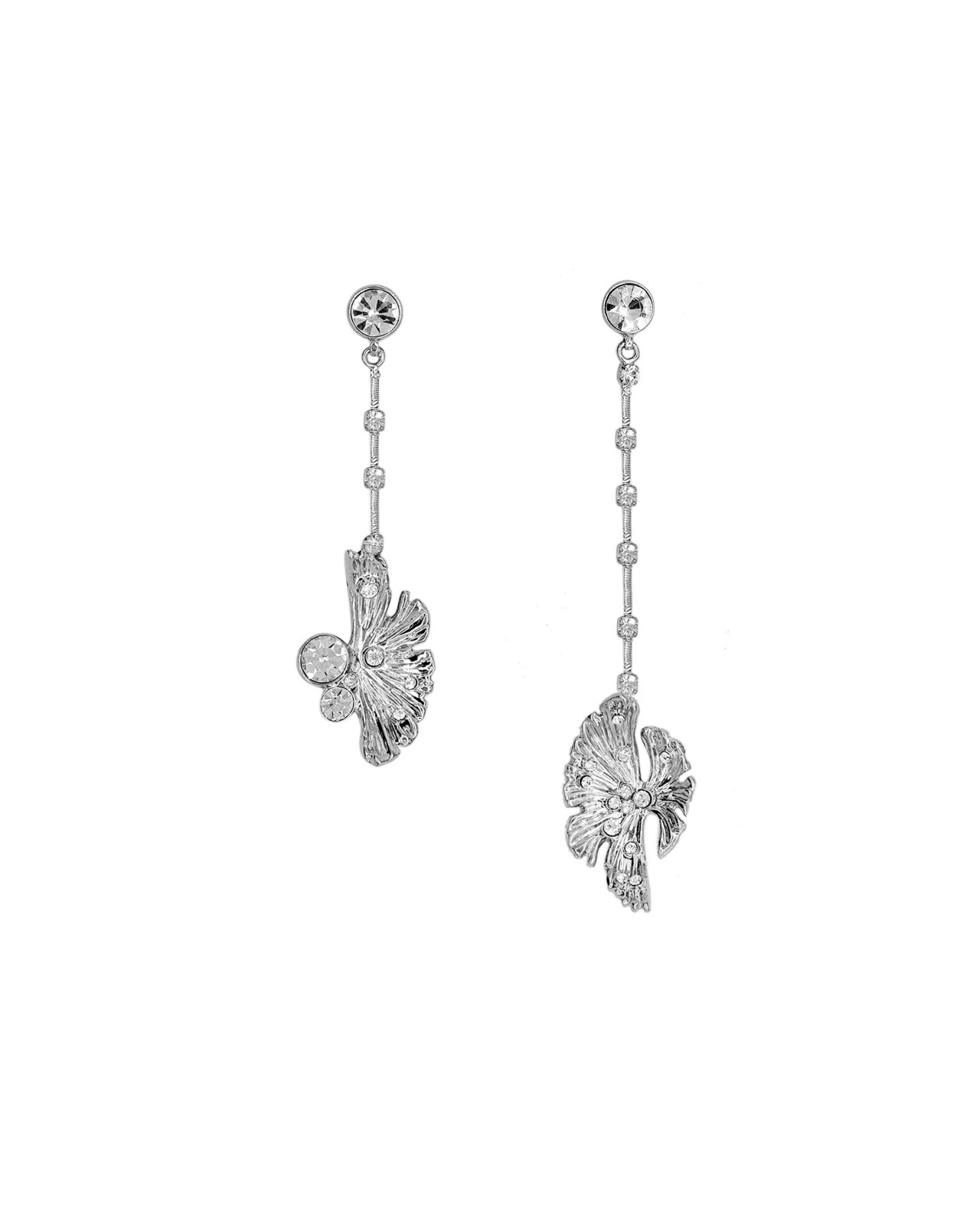 Textured Brush Painting Collection Silver Cystal-embellished Asymmetric Lotus Leaf Earrings