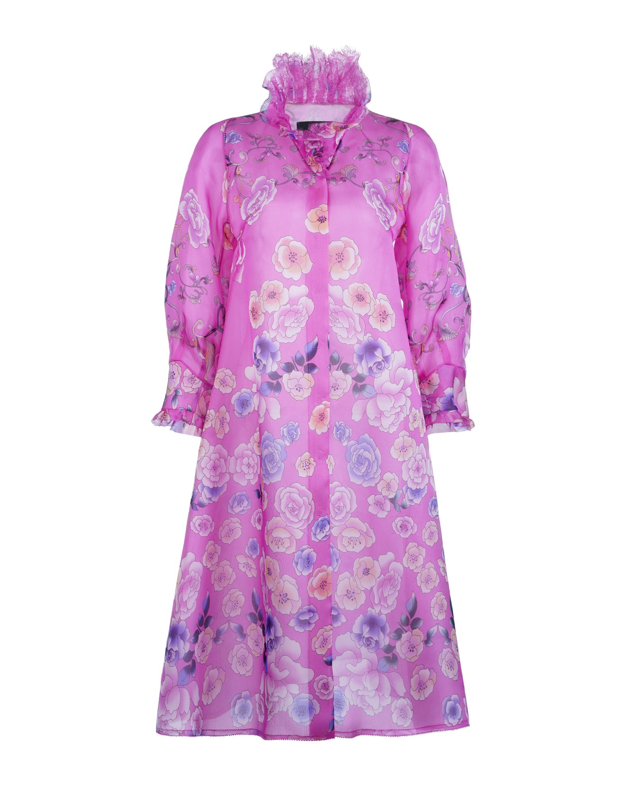 Chinese Rose is one of the mian inspirations of this season. This organza coat is tailored from the exclusive printing fabric with full of Chinese rose pattern. The lace detailed collar and ruffle cutt, this stylish coat could lend your wardrobe a delicate highlight.