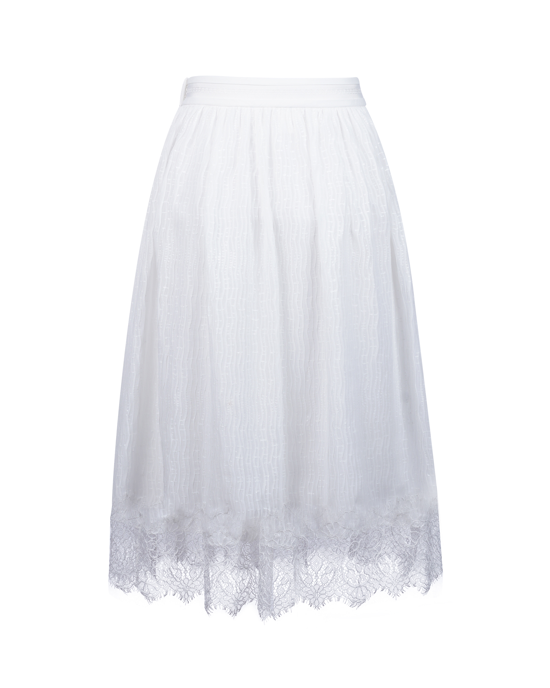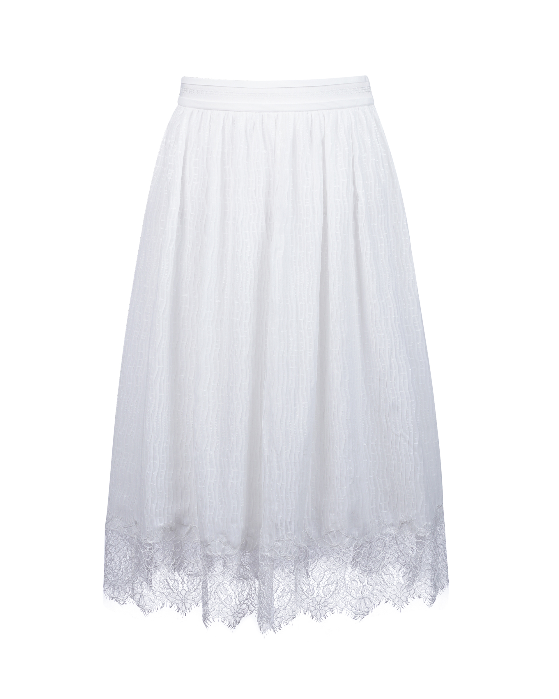 This skirt is tailored from delicate jacquard with voluminous pleats. Lace is panelled on the hemline to build up an elegant touch. This is a practical piece that could match with any item.