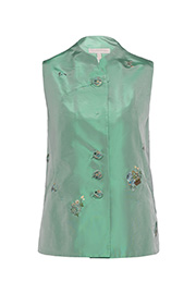 This long vest is cutted from exclusive jacquard that is inspired from the Chinese luck object- Ruyi. It is crafted as voluminous structure on the buttom that you could wear it as a retro midi dress. Or you could pair it with shorts to have a multi-layered spring look.