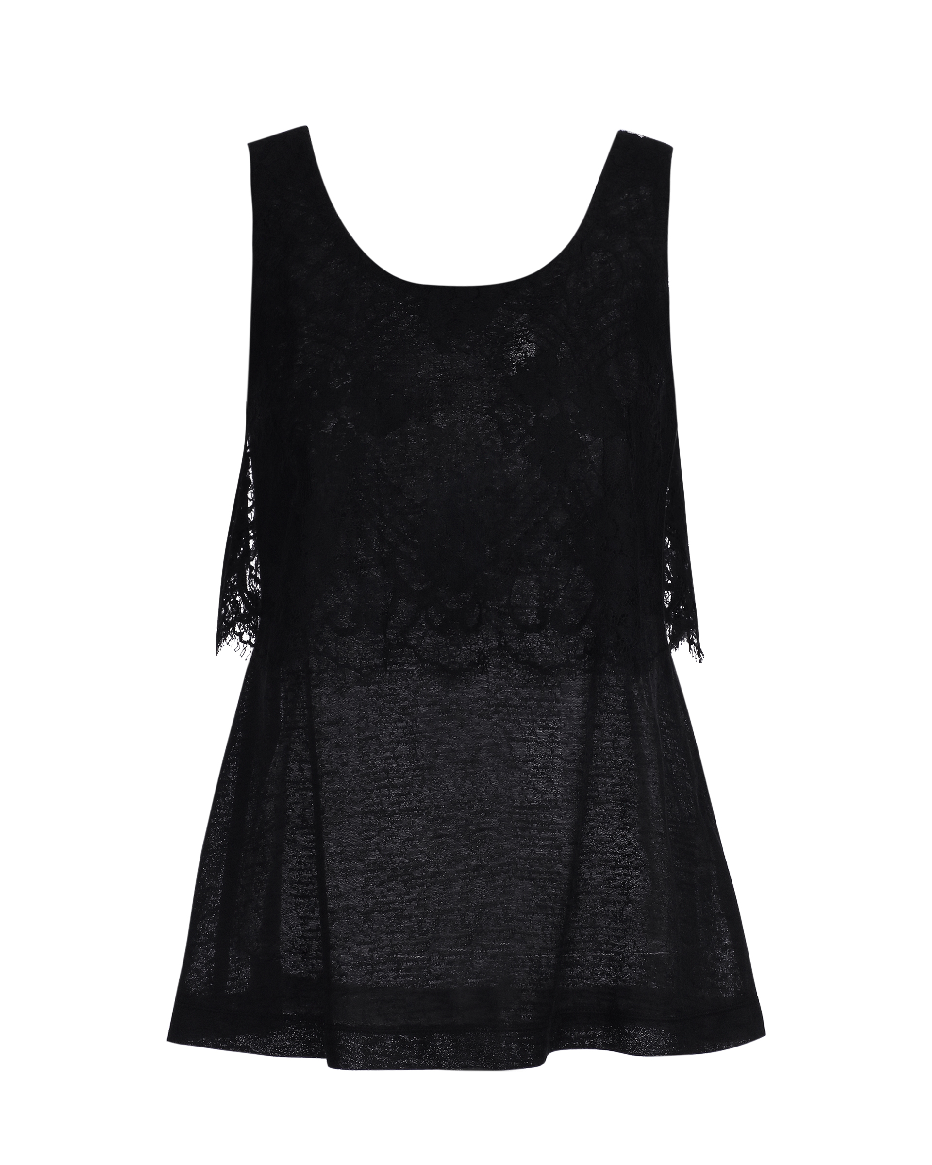 This sleeveless top is composed by the see-through fabric and delicated lace. This is a perfect basic edit to help you completing the young and fresh daily look.