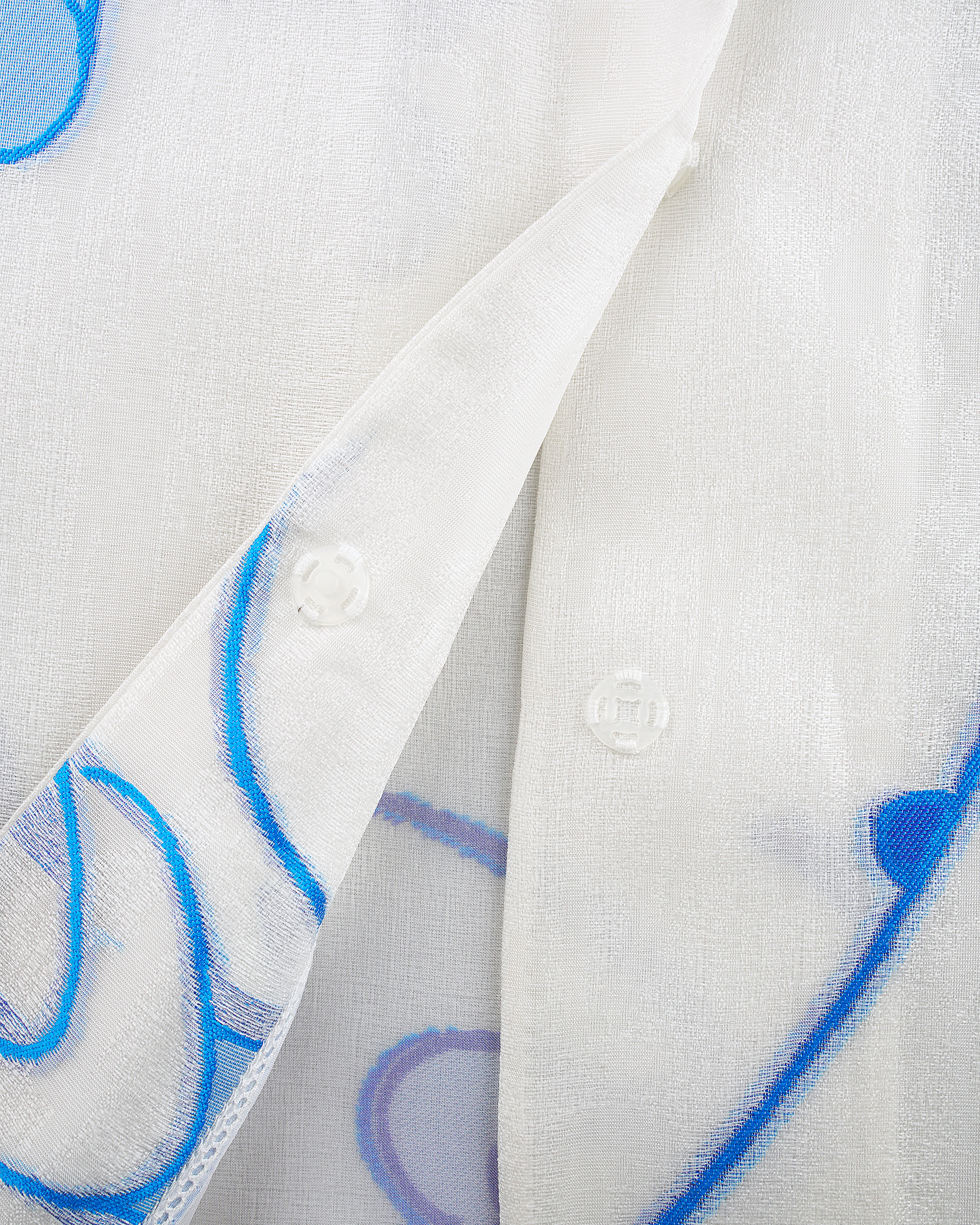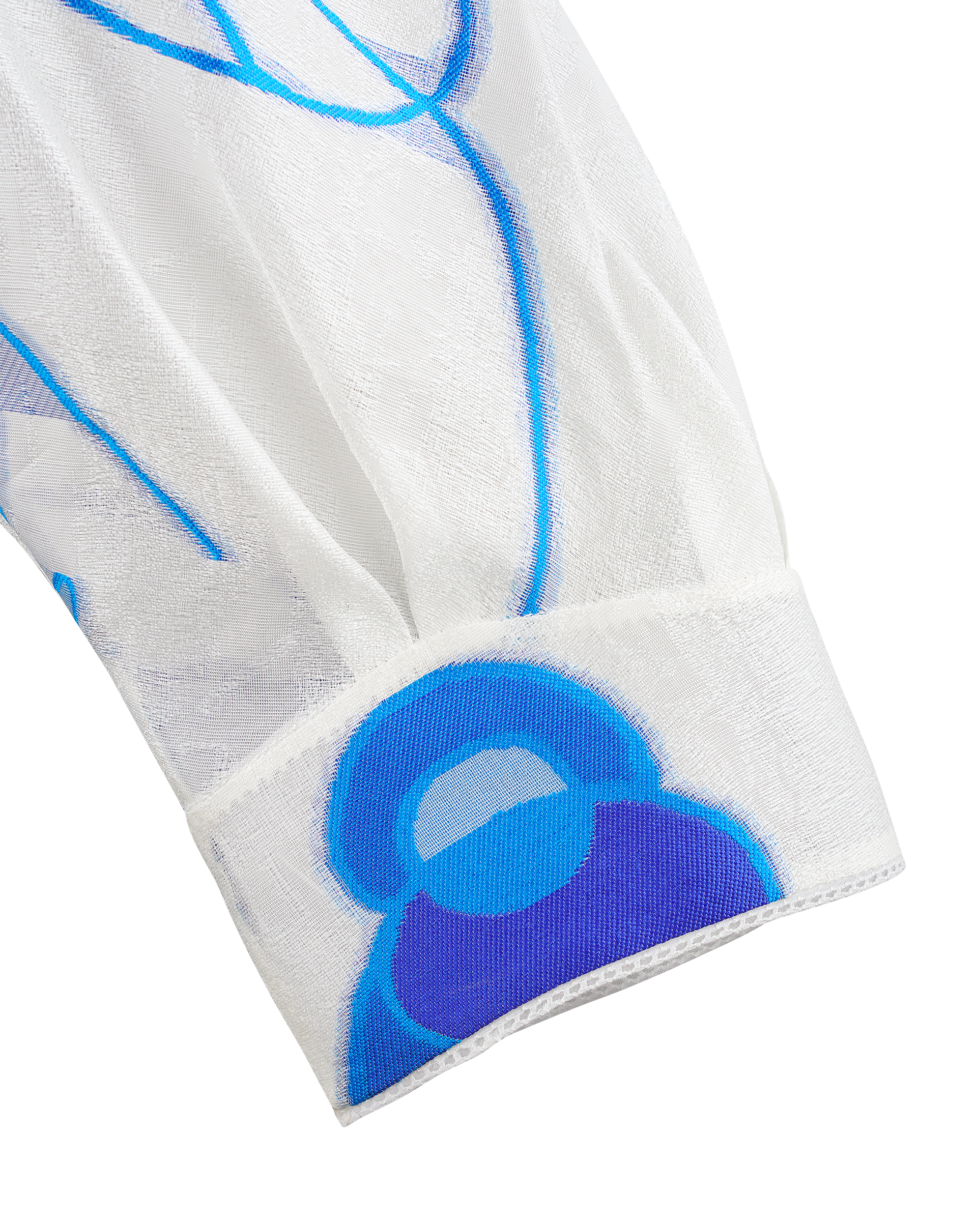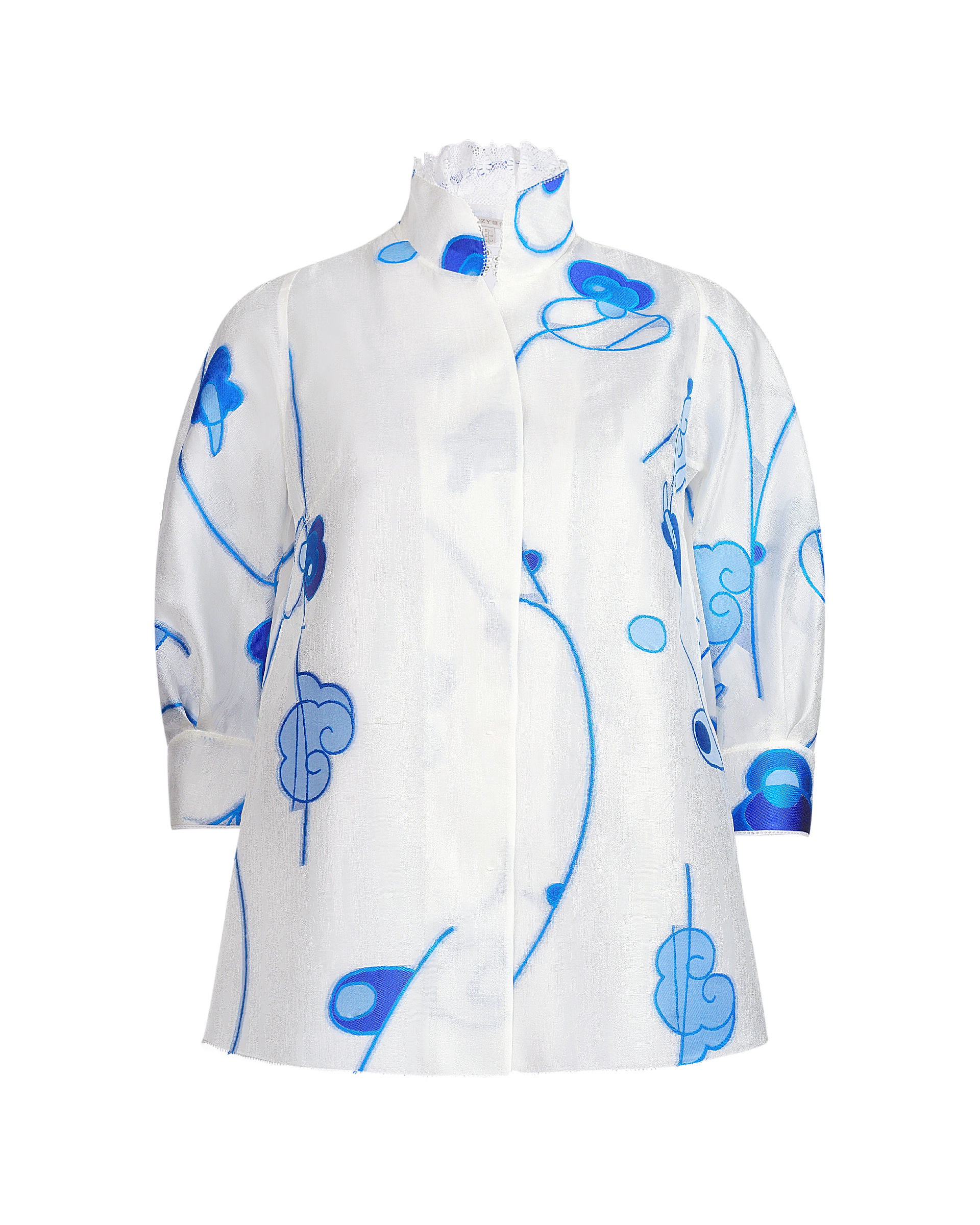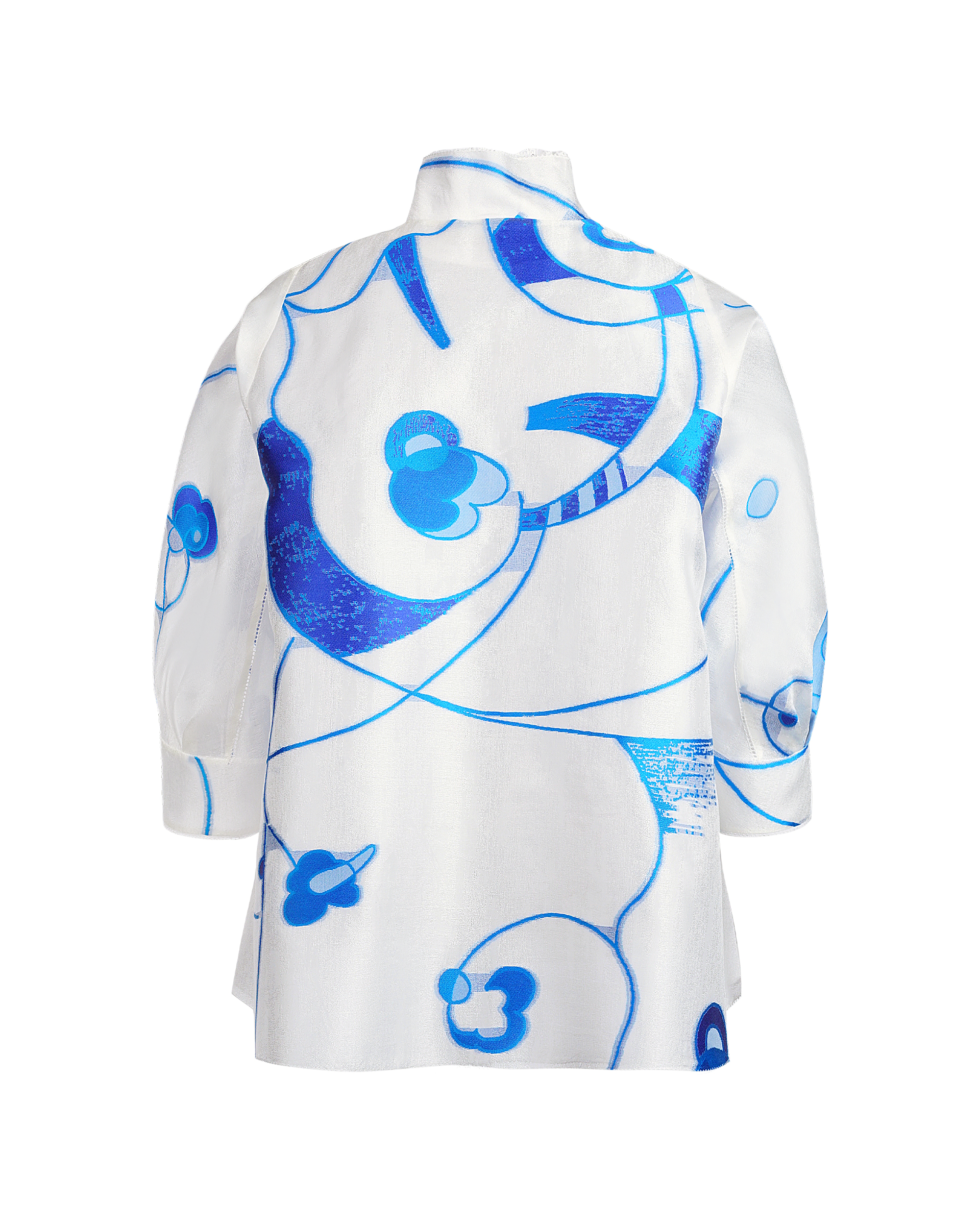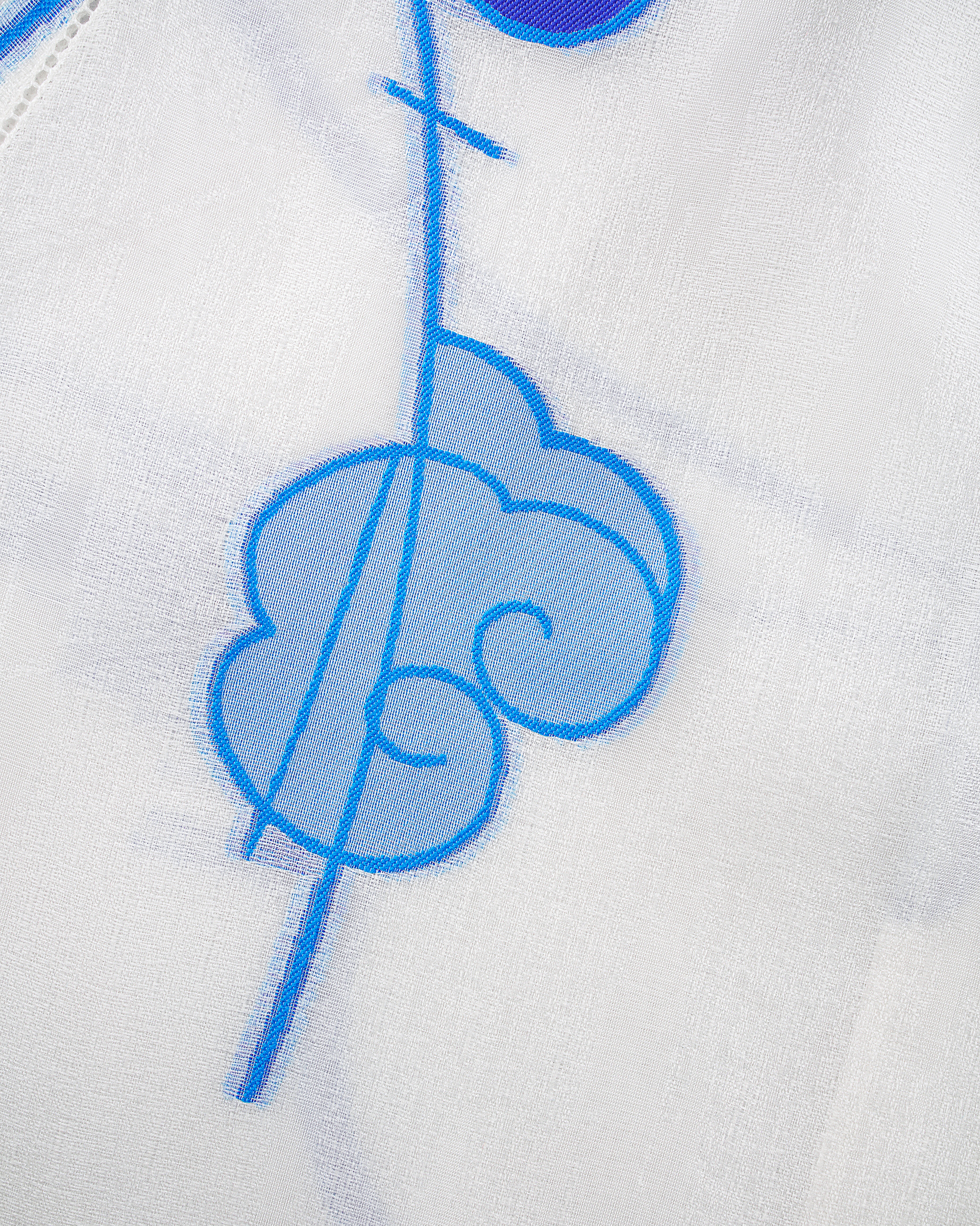 This jacket is tailored from exclusive jabquard which is inspired from Ruyi- the Chinese traditional luck object. Combined with 60s graphic design and abstract pattern, together with the classic silhouette.This piece could build up a charming layered look when you put a shorts on.