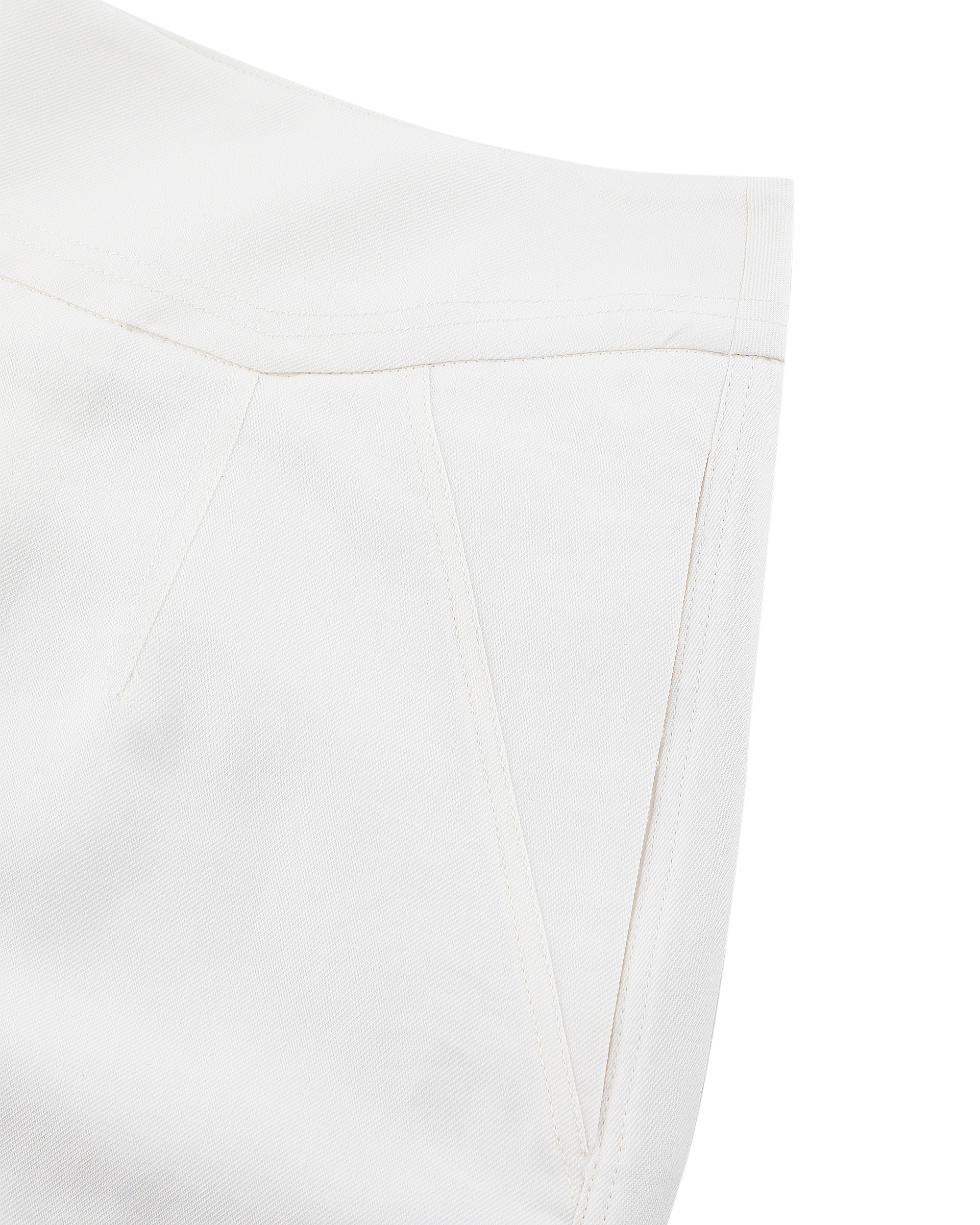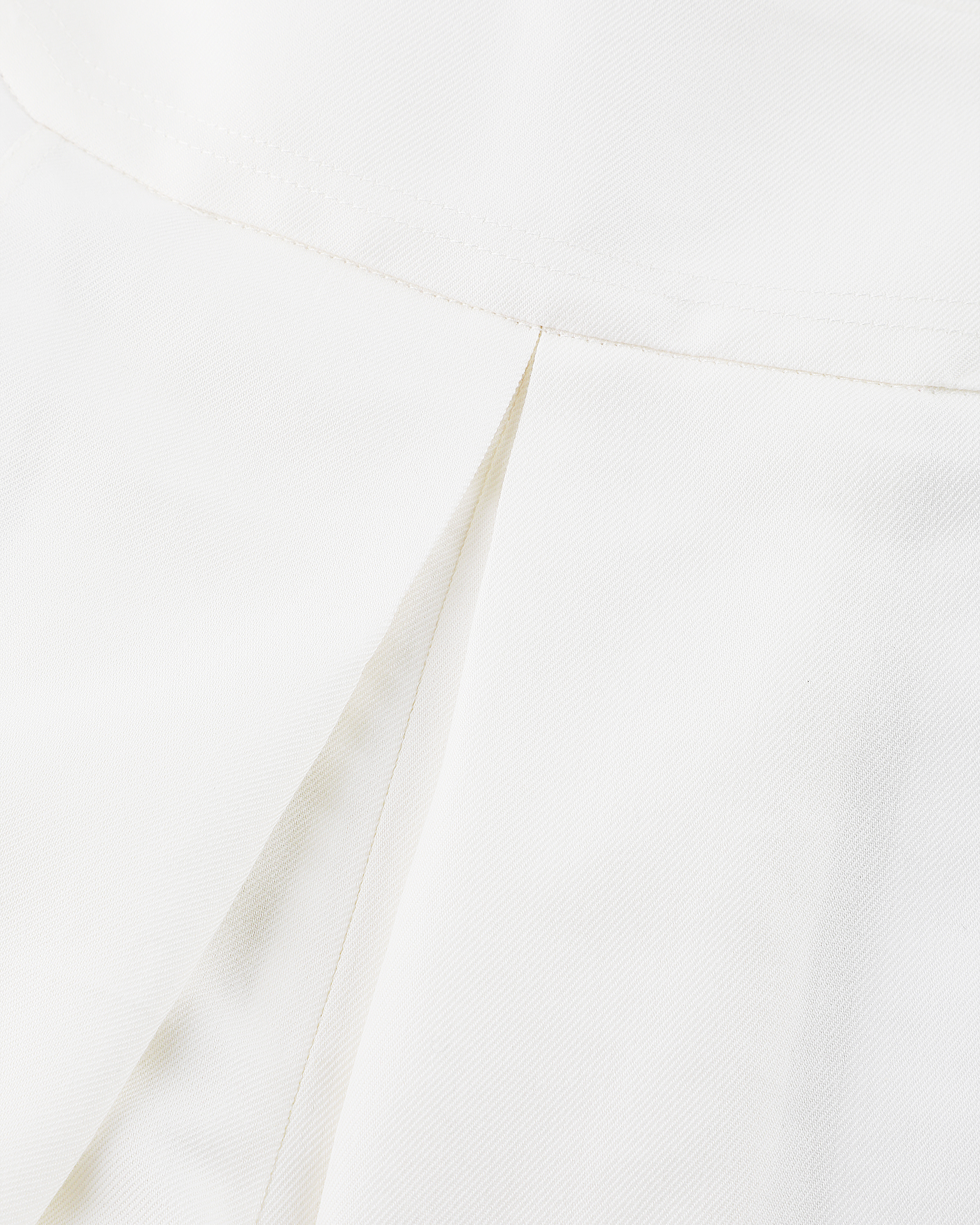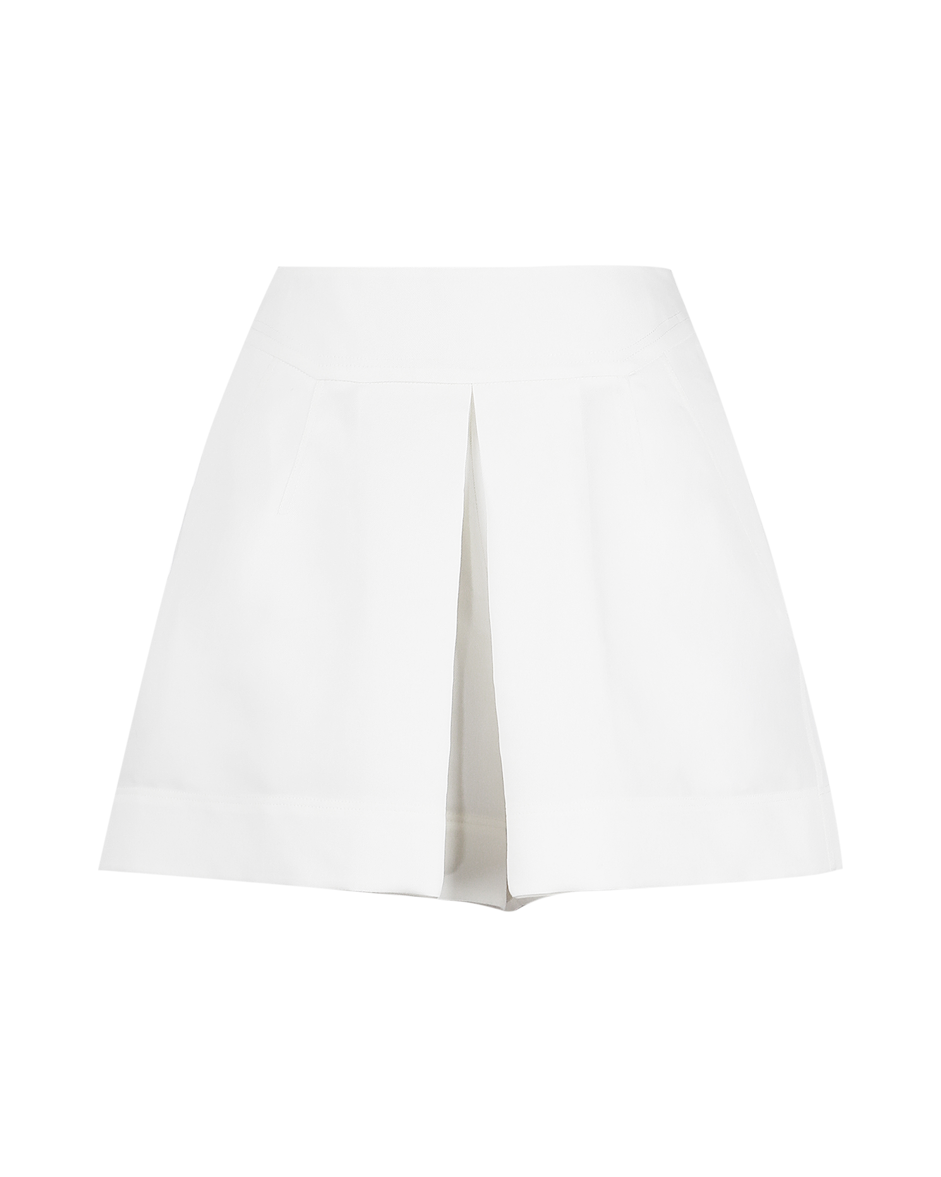 This shorts is made from silk-cotton blend. The fromt placket is cutted as stereoscopic structure which is similar as a mini skirt. Pair it with casual top to have a relax look.