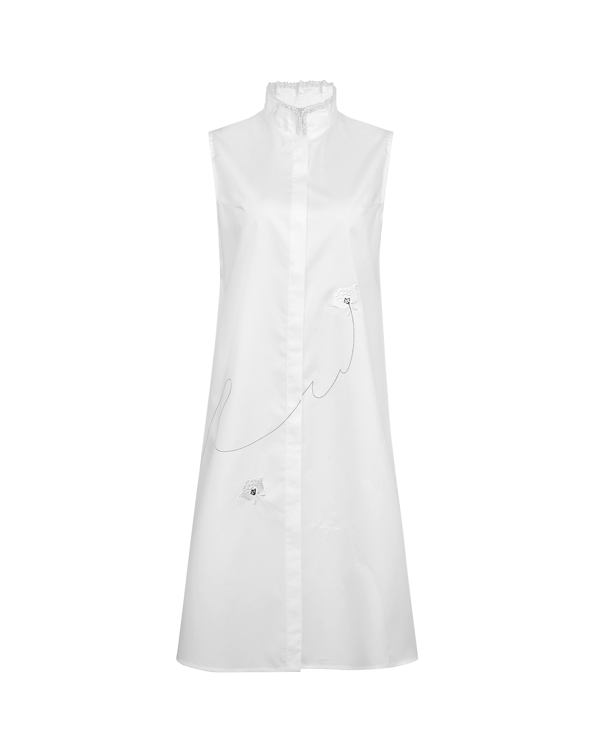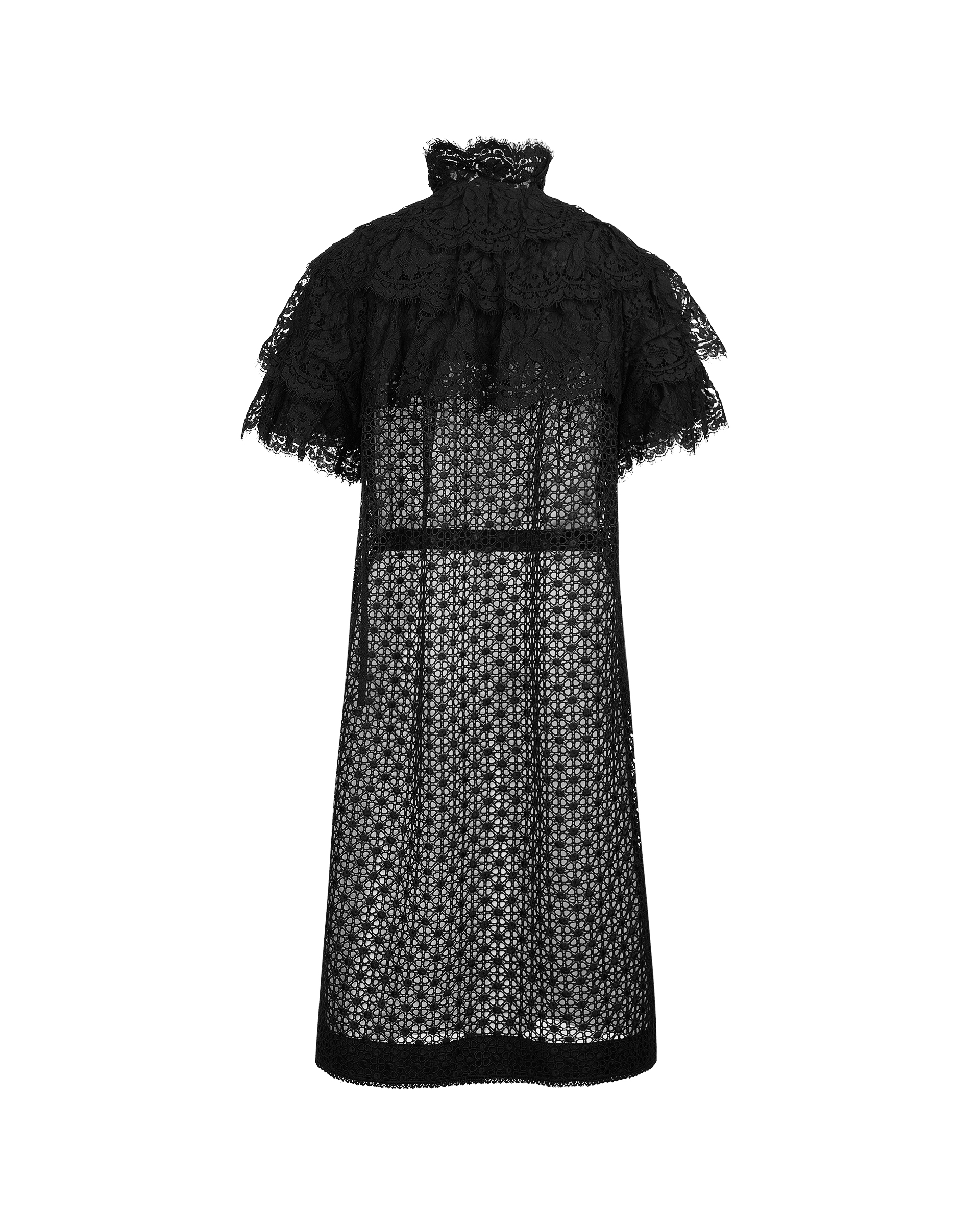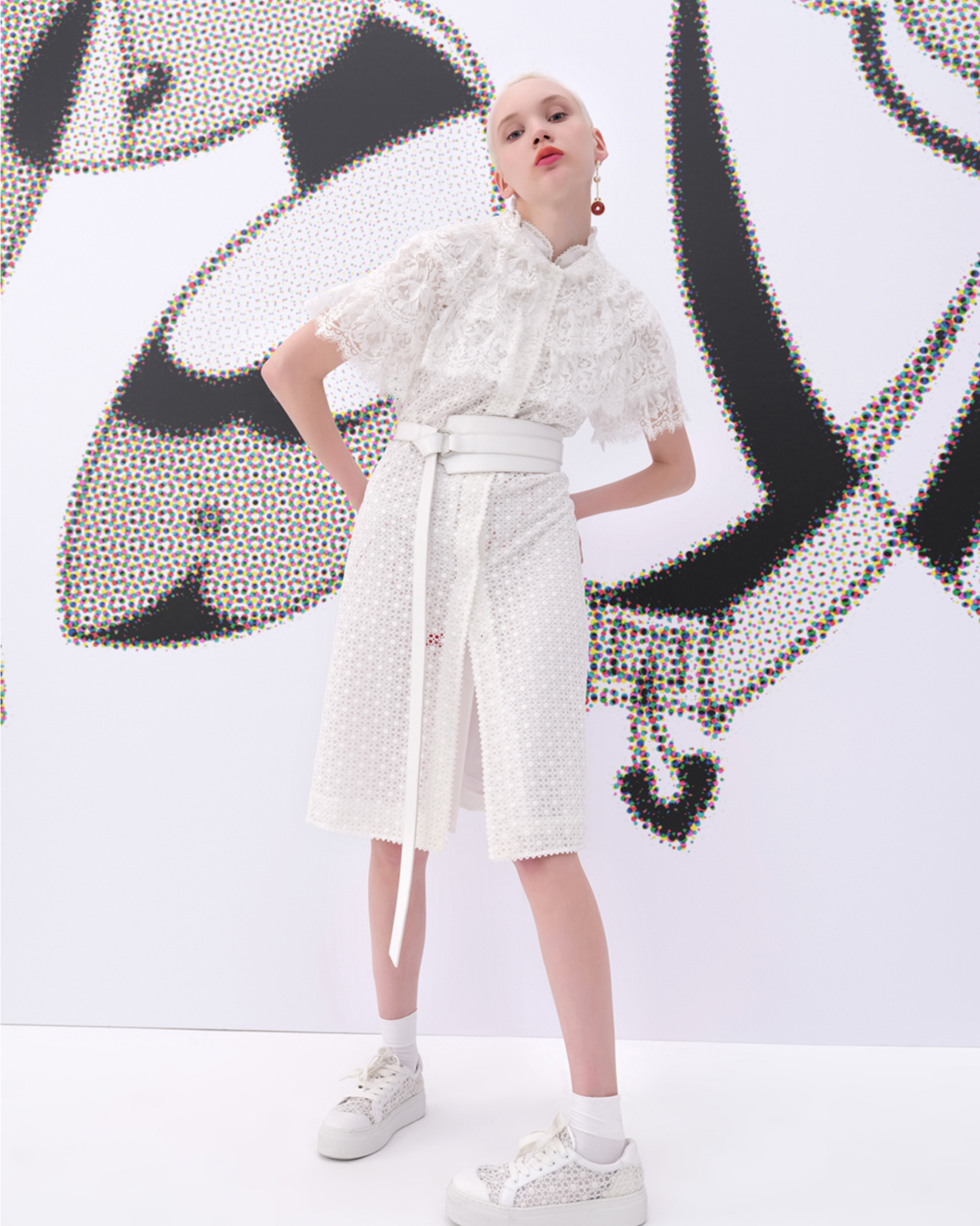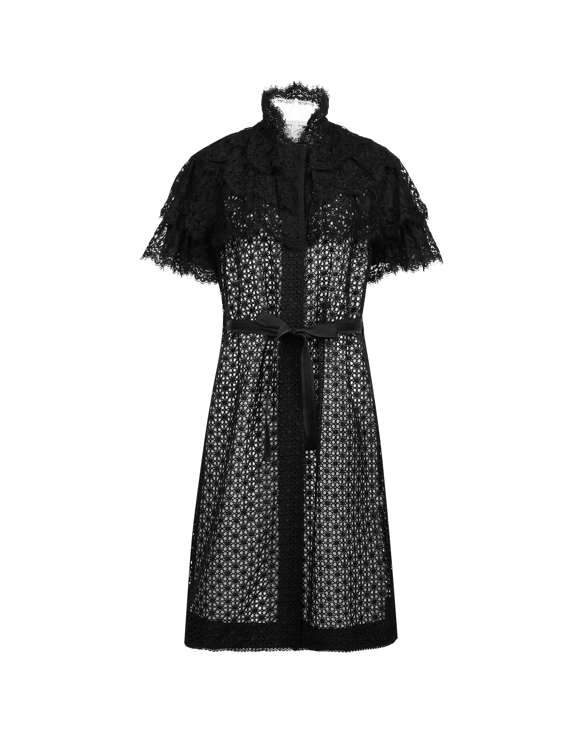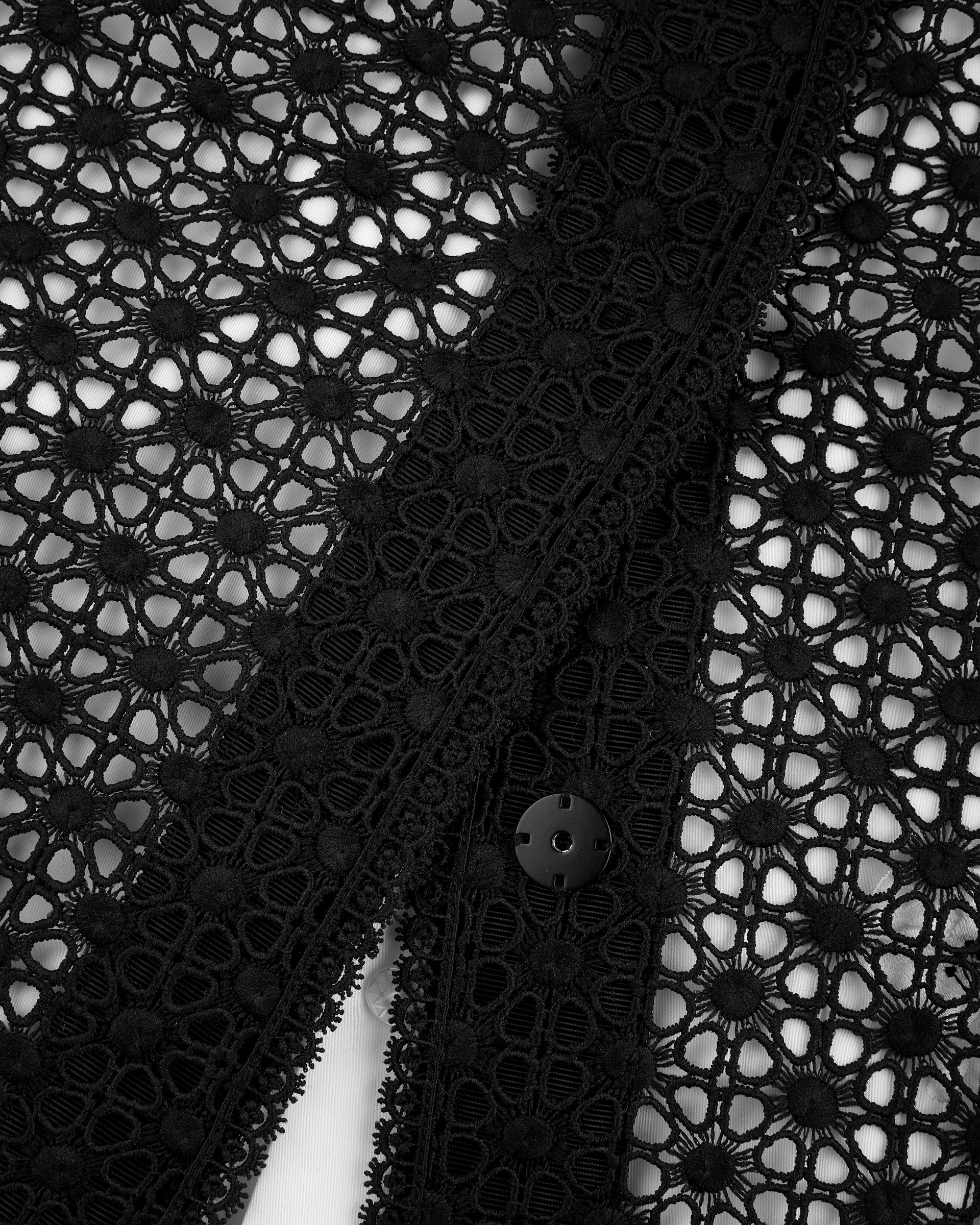 This coat is tailored from sheer floral lace with the embroidered cotton long undervest. Layers of lace are constructed on the top,creating the luxurious glamour effect.Together with the detachable belt, all resulted in the romantic spring allure.