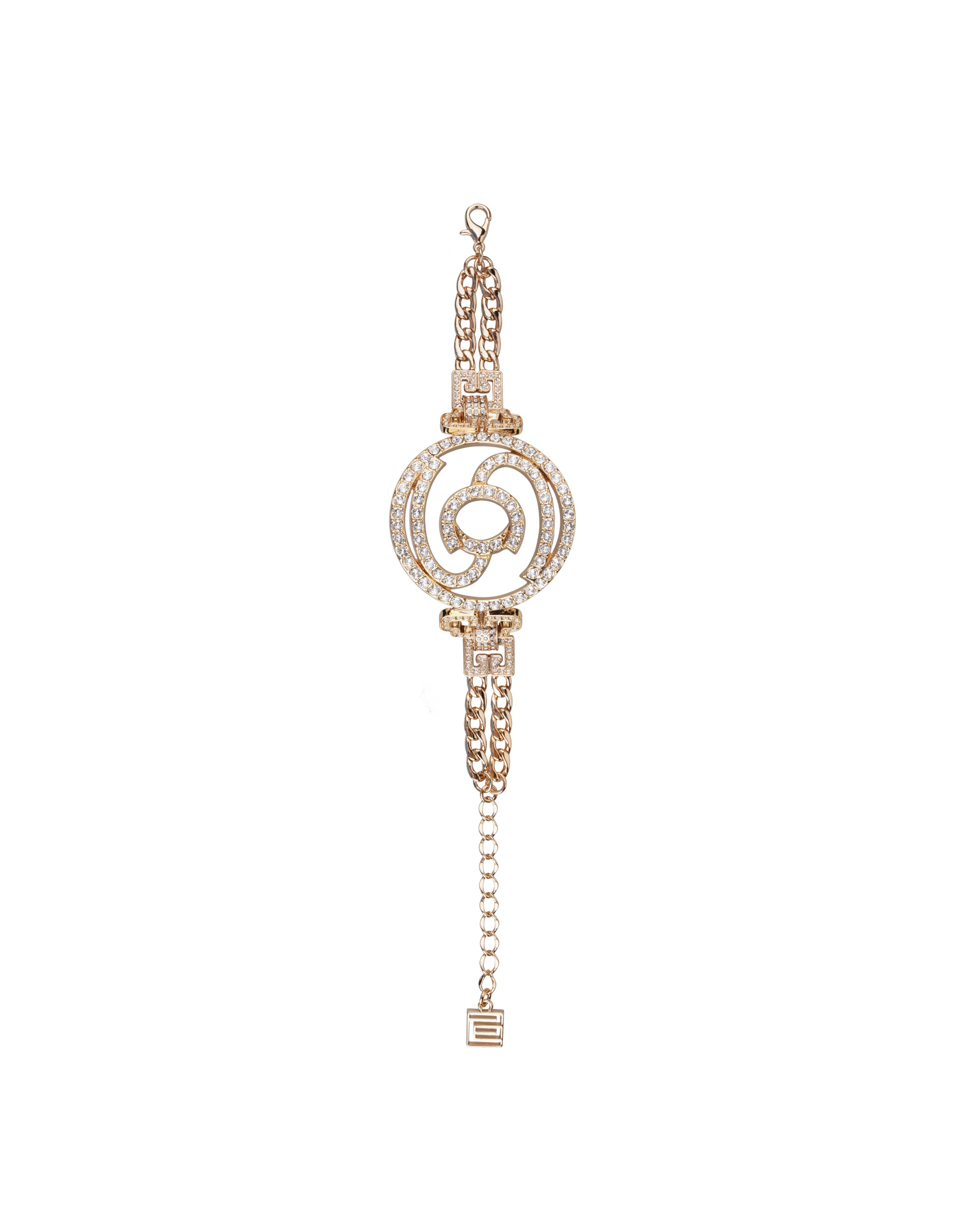 Remodel the SC logo into round shape with Swarovski crystal embeded. This antique like bracelet could accessorize your wrist with sparkling shine.