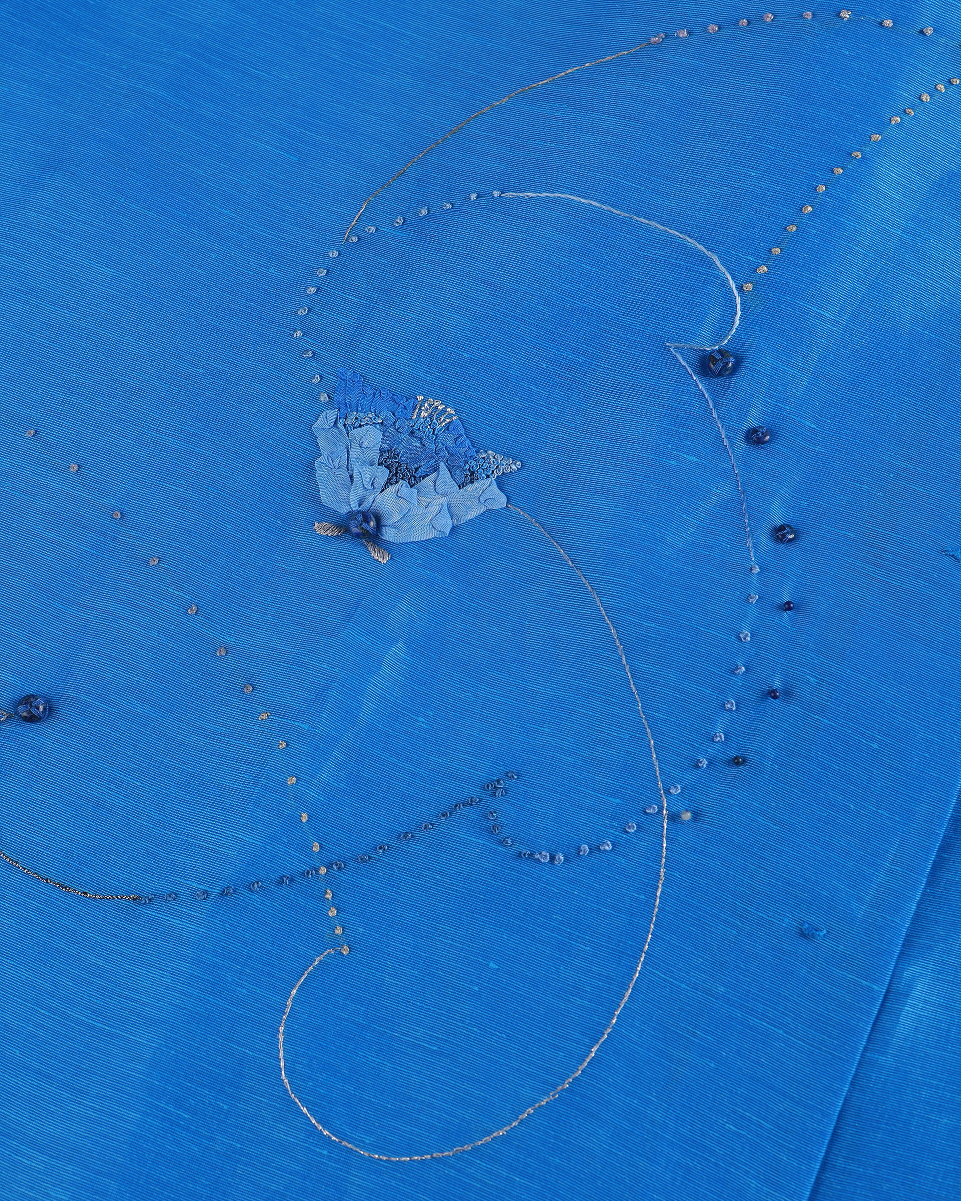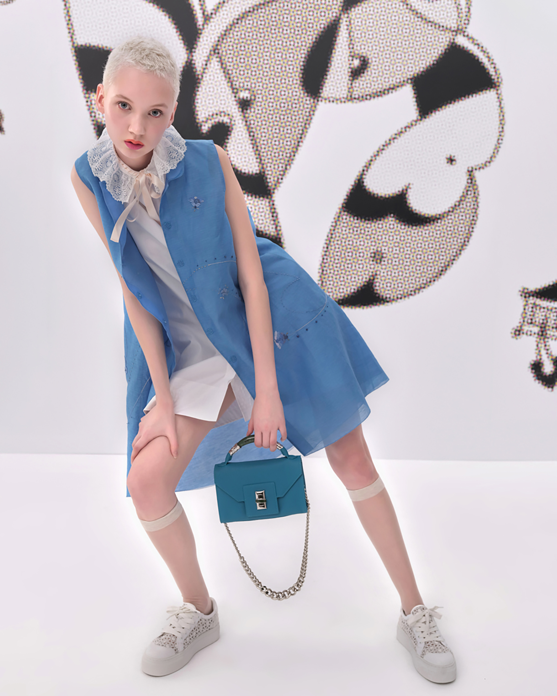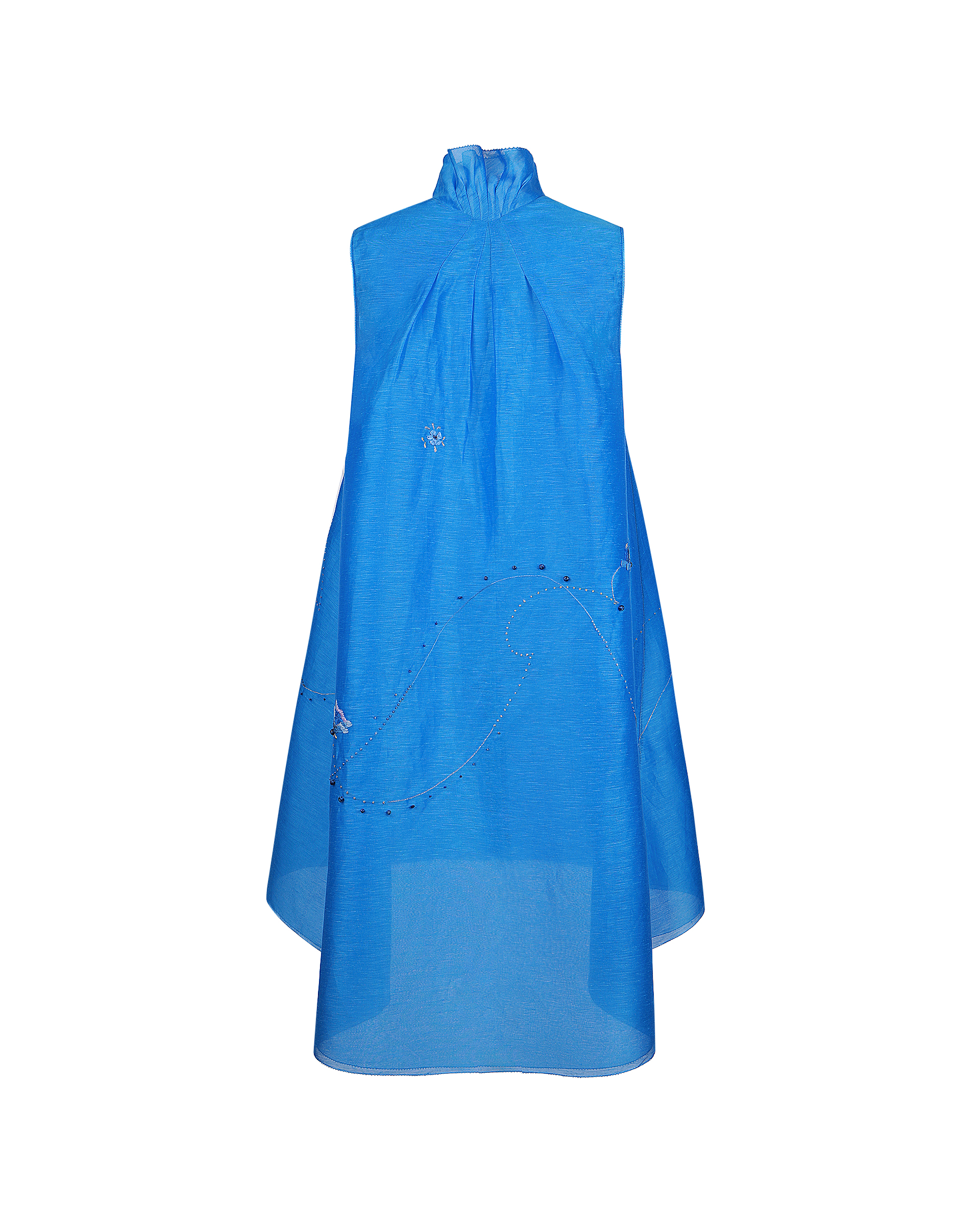 This vest is shaped in unique silhouette which contains the length disparity on front and back that could strengthen the floating effects.The embroidery is inspired by the traditional Chinese aritfact-Ruyi. The flying lines and abstract totems modernize the classic Chinese aesthetic.