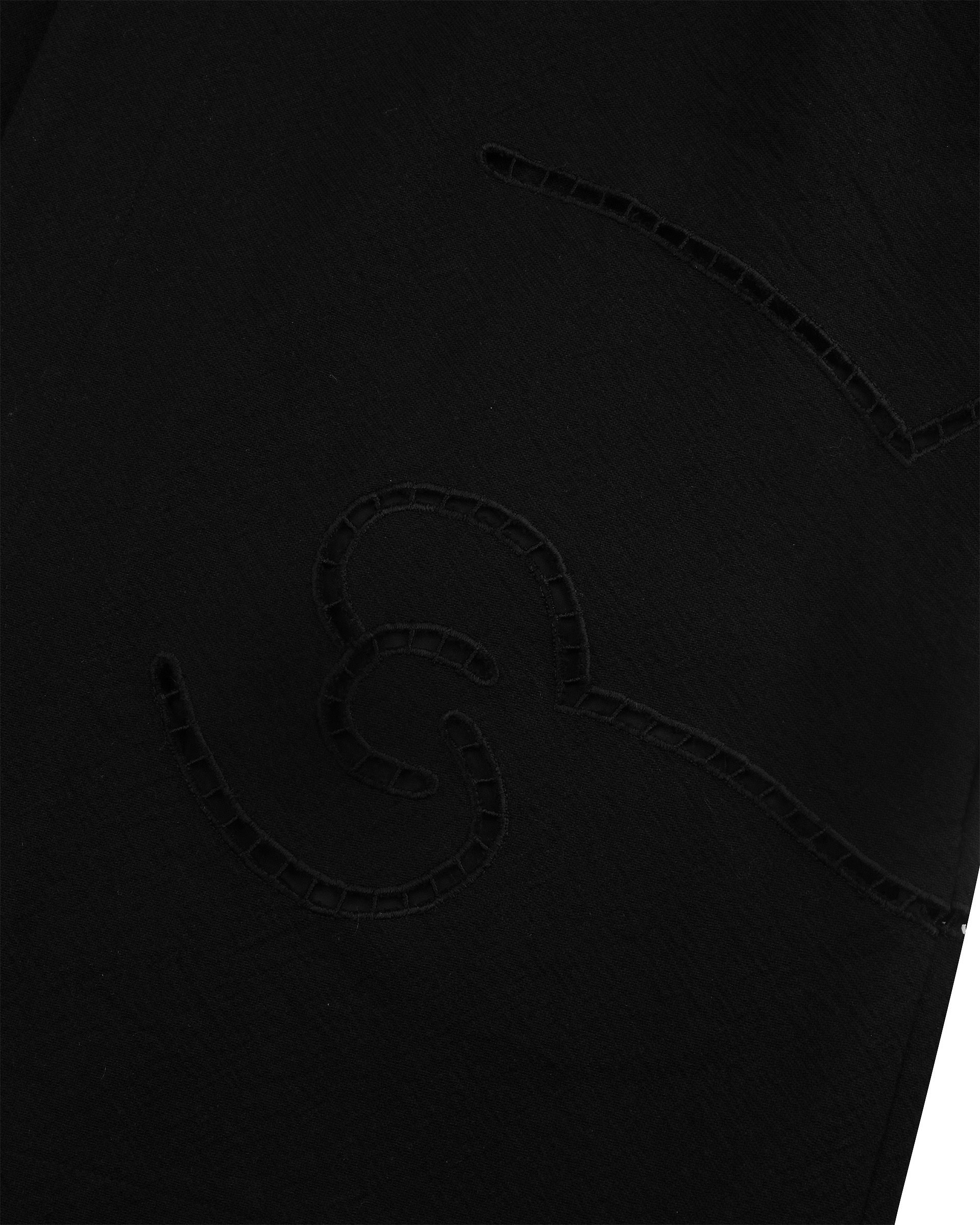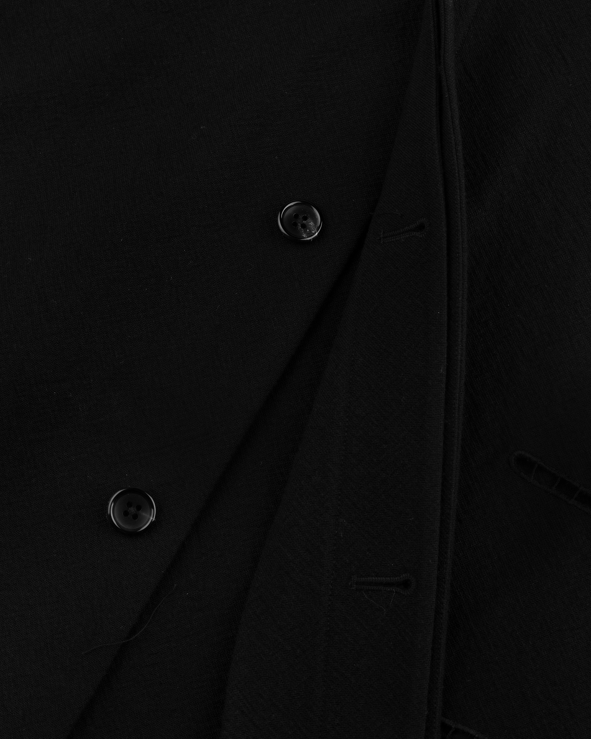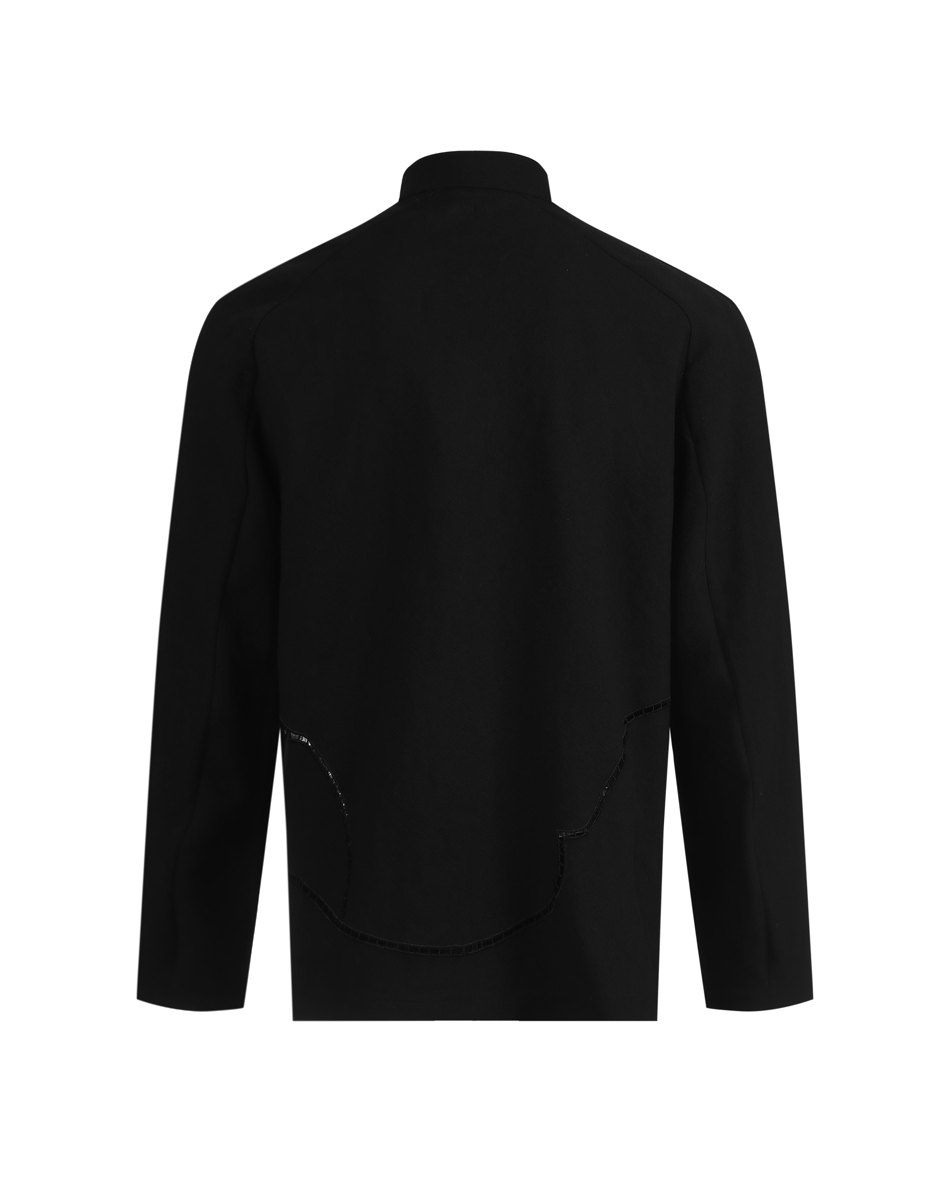 This jacket is tailored from extremely soft wool-cotton blend.  Embellished with the fretworked totem which is inspired from the Chinese traditional artifact-Ruyi. This piece is shaped in regular silhouette with low profile ornament that could lend a fresh touch to your gentleman look.
