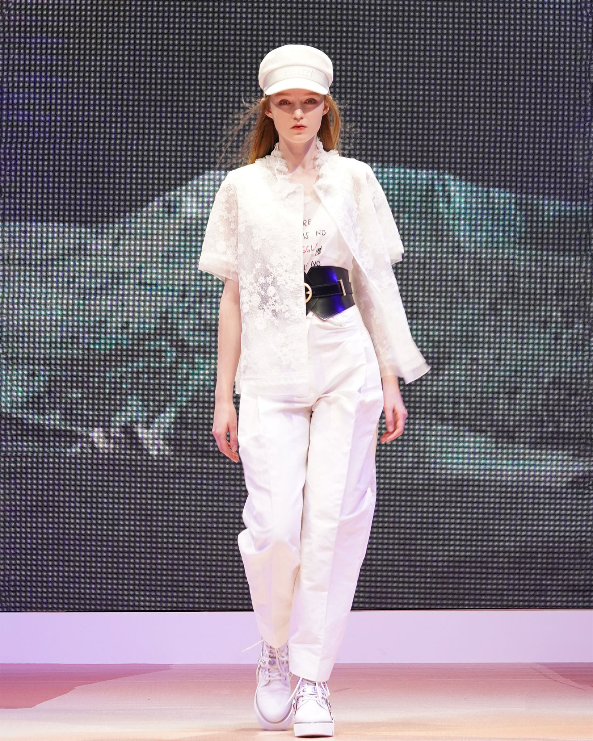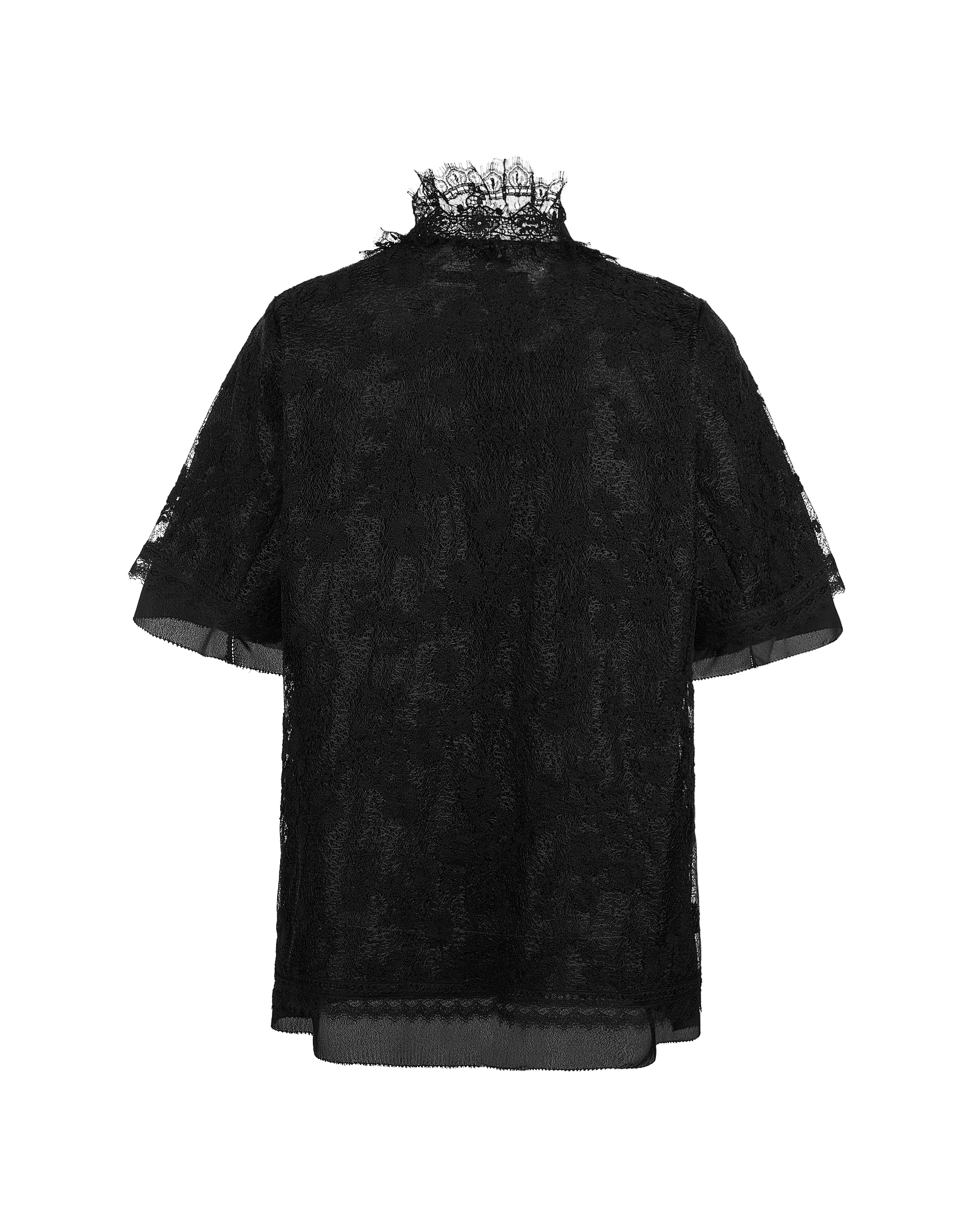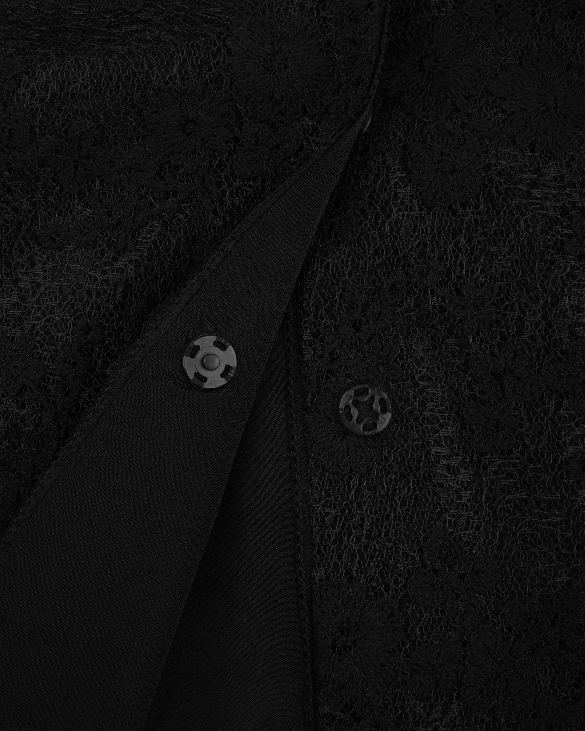 This jacket is made from delicate lace with classic pattern. The collar is full of touching layers and details that offer this piece a luxurious touch. This piece also could be a top to complete the light summer look.