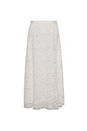 This skirt is tailored from exclusive jacquard. The abstract pattern is inspired from the plum blossom on the montain rock. Lace is panelled on the hemline as a girly detail. It could be paired with a silk blouse or a slimm knit top to have a breezy urban look.