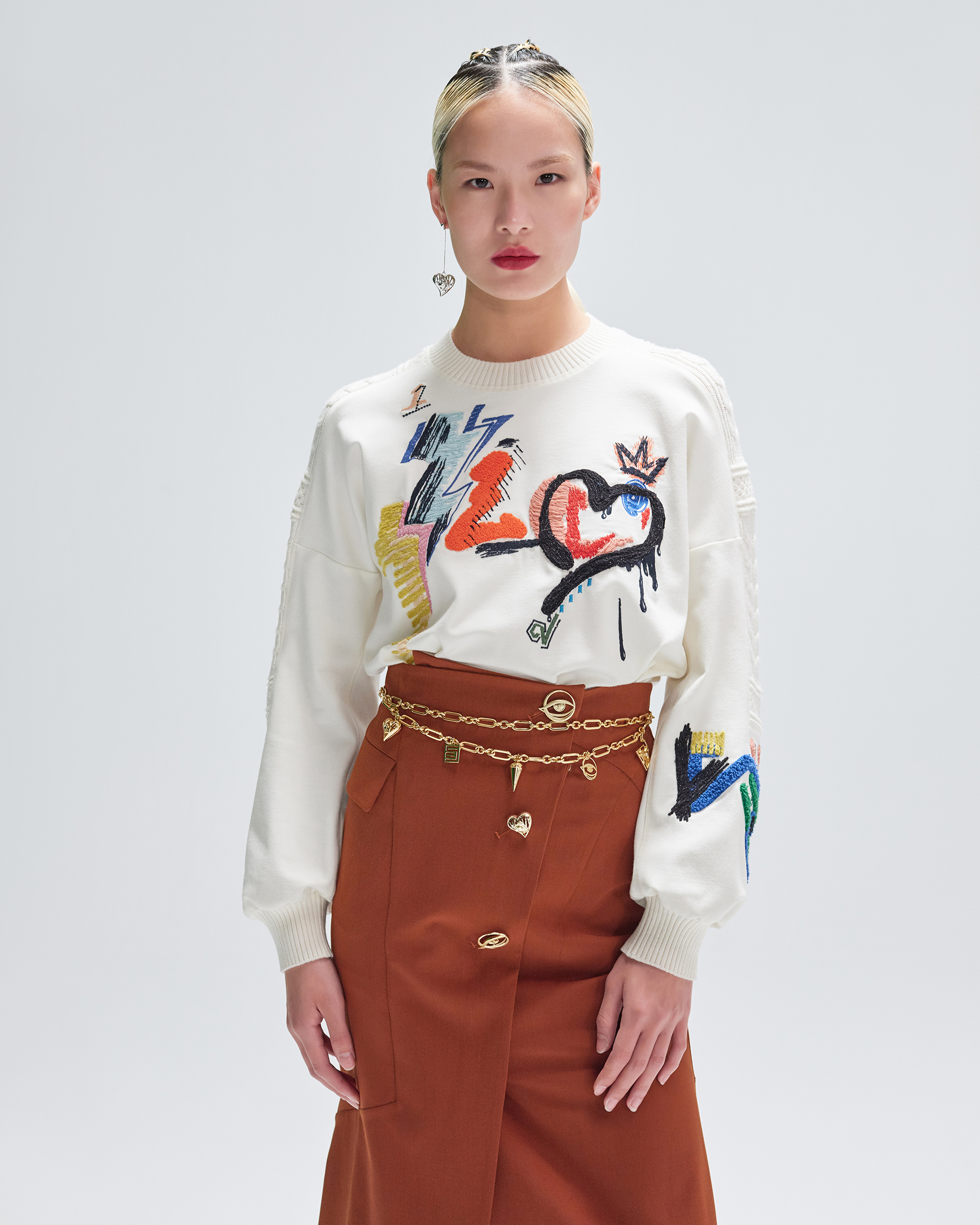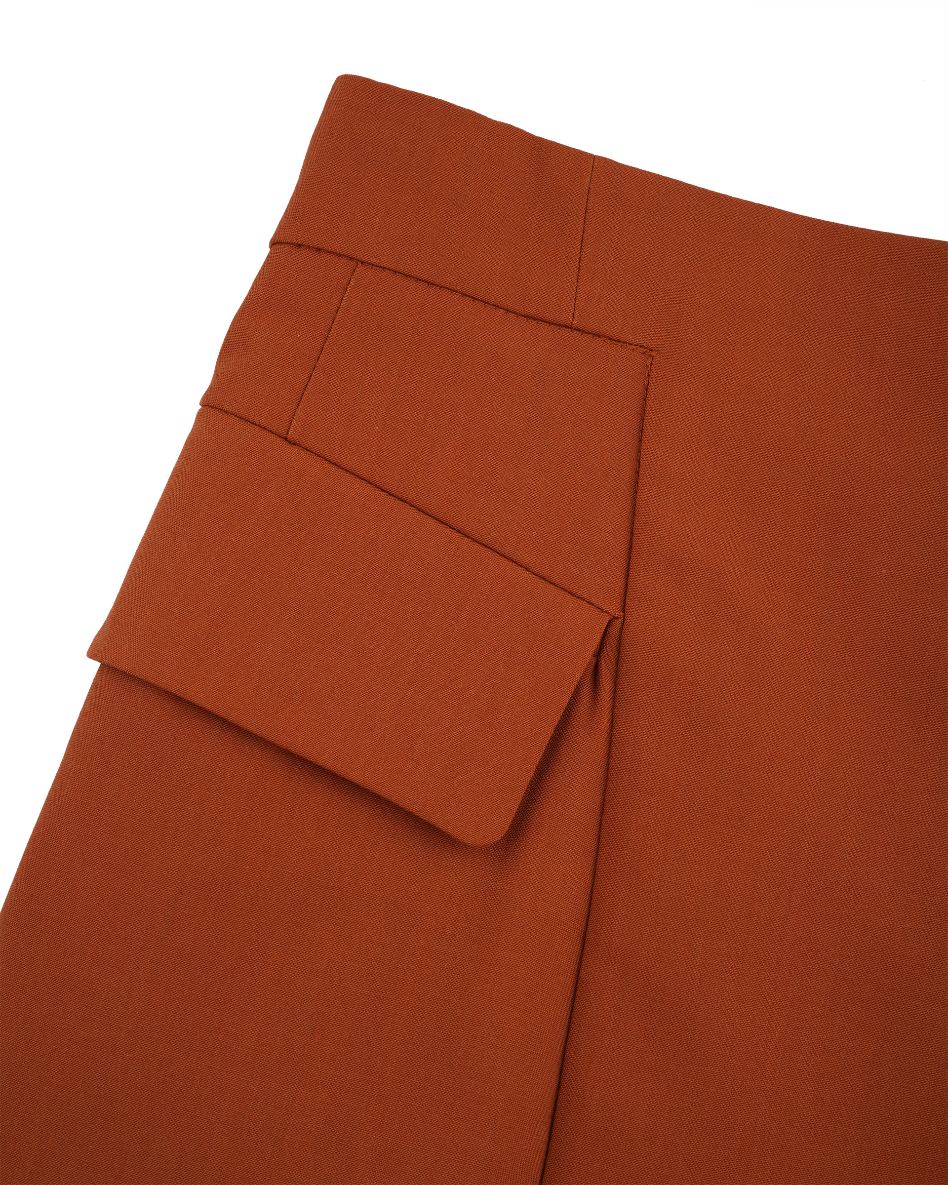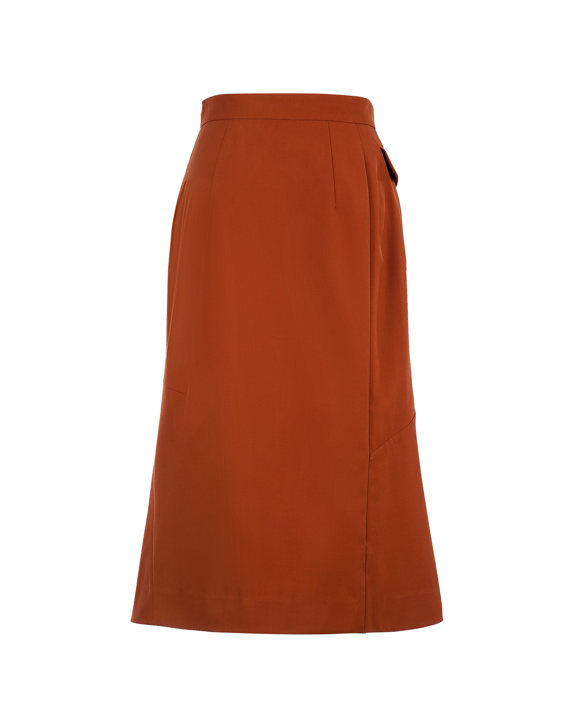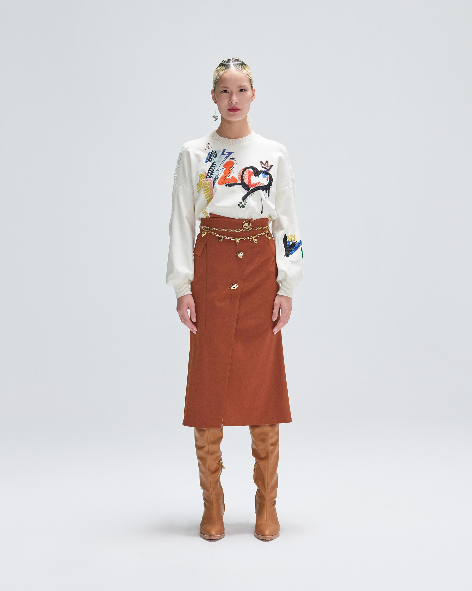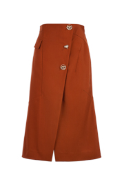 This skirt is shaped in slim asymmetric silhouette and embellished with the exclusive buttons.This piece could be paired with any slim cutted top to have a modern urban look.