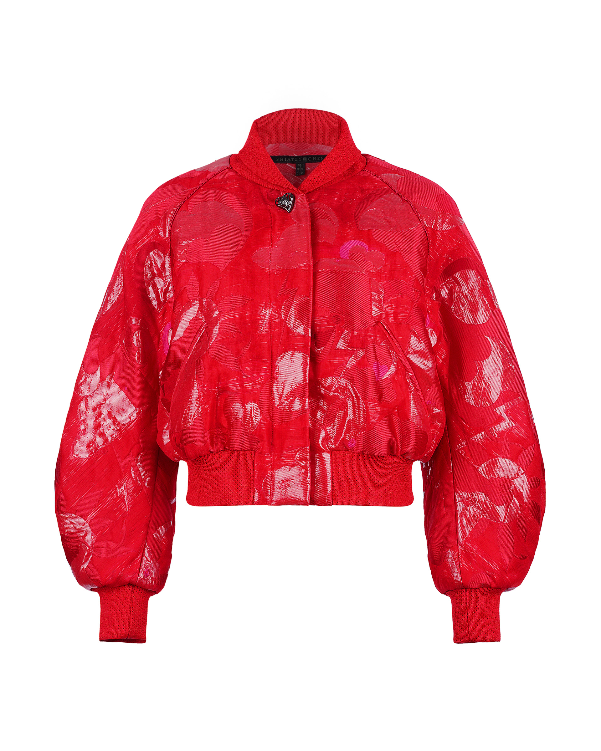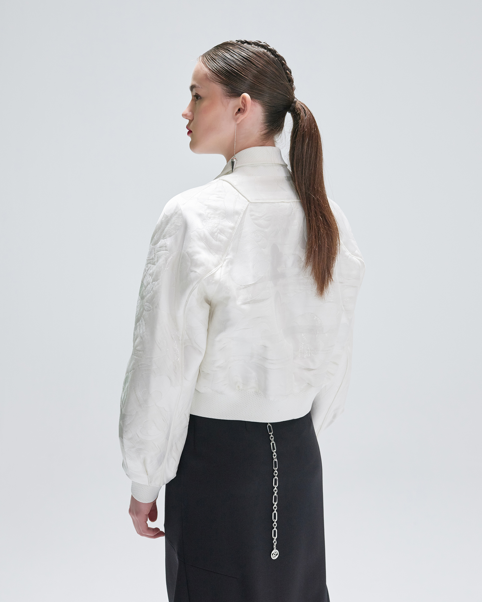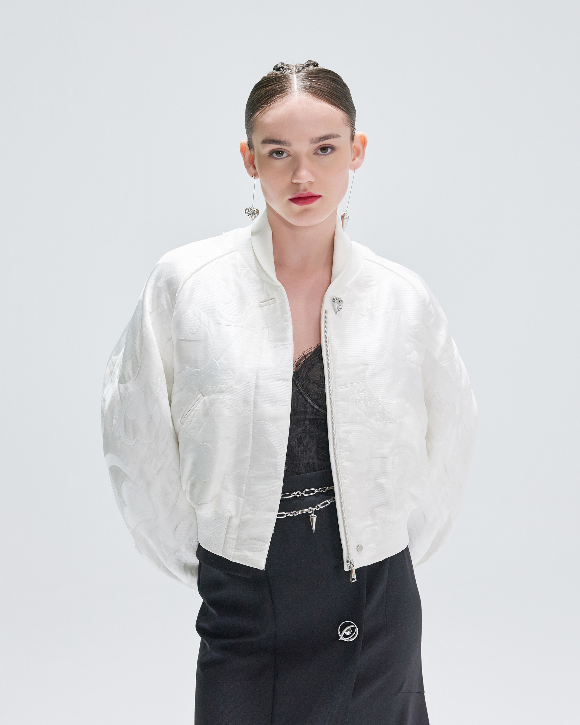 This jacket is tailored from seasonal exclusive jacquard which is made with different colors and textures. Crop silhouette and sporty sleeves offer this piece a casual allure, it could match all your daily looks.