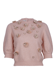 This sweater is made from wool. The rich veined pattern is highlighted with beadings shining with charming glamour. This is a seasonal essential to build up a comfortable winter look.