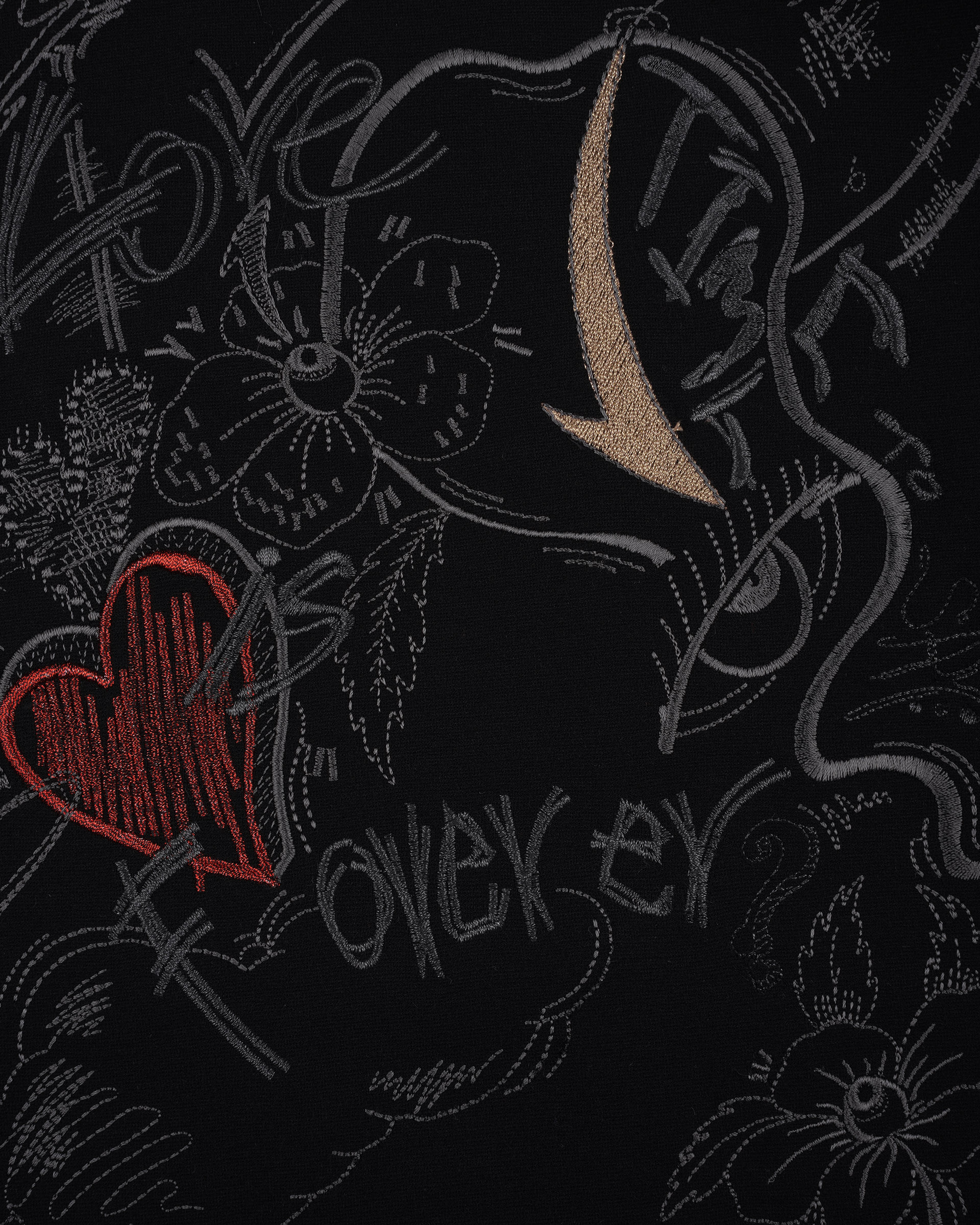This hoodie is cutted in relax silhouette. Detailed with the embroidered pattern which is inspired from 2021AW collection. Combining the bright colors with artistic pattern that delivers a casual and vibrant flair to this piece and it could match all your casual essentials to have a great off-duty look.