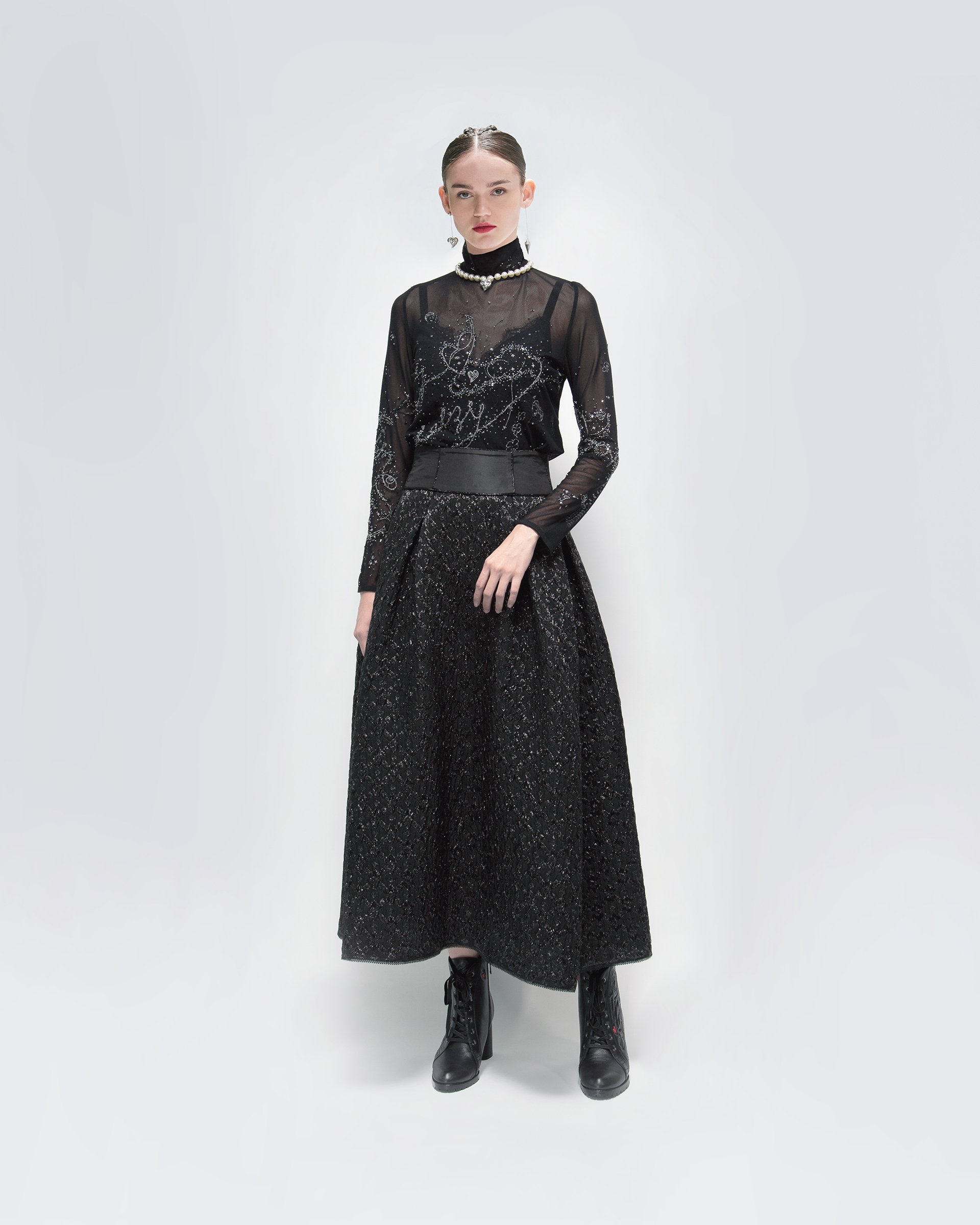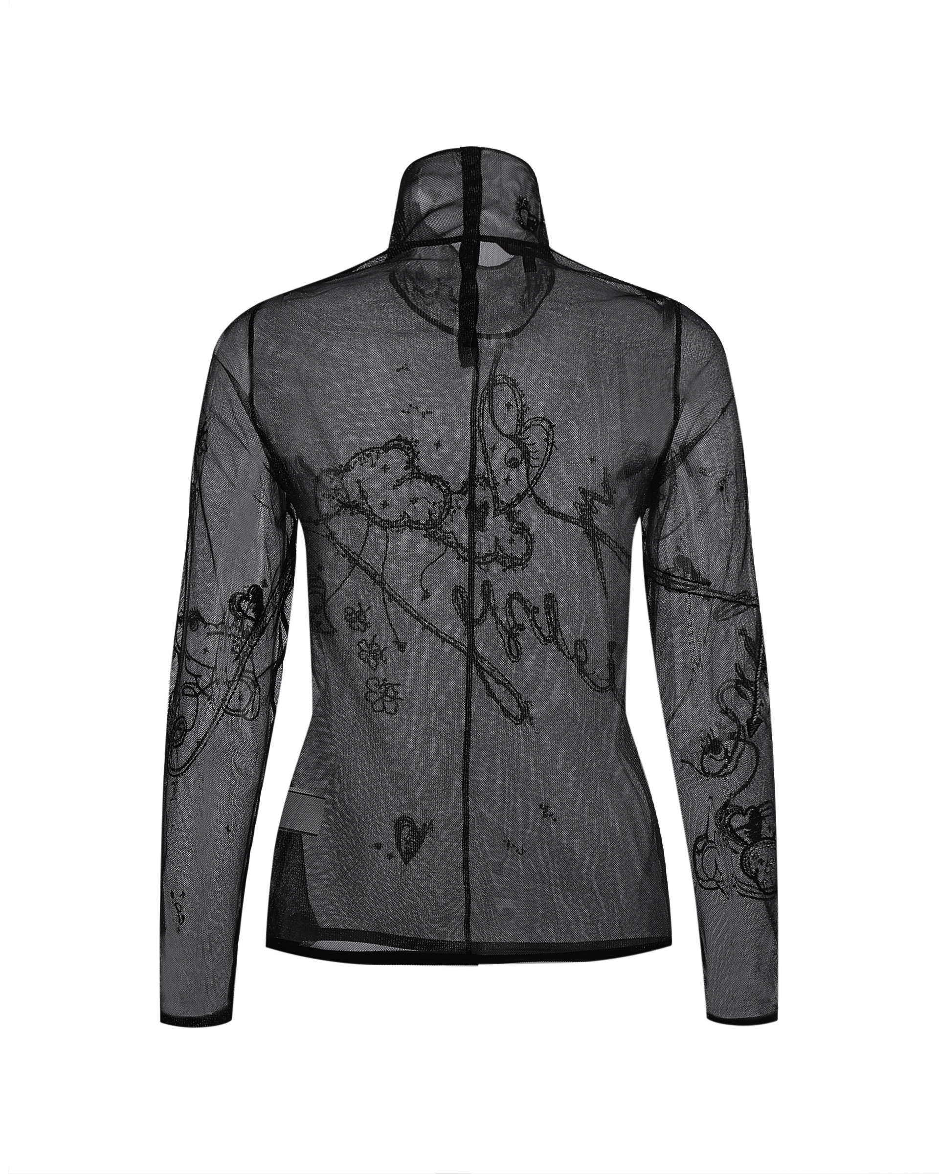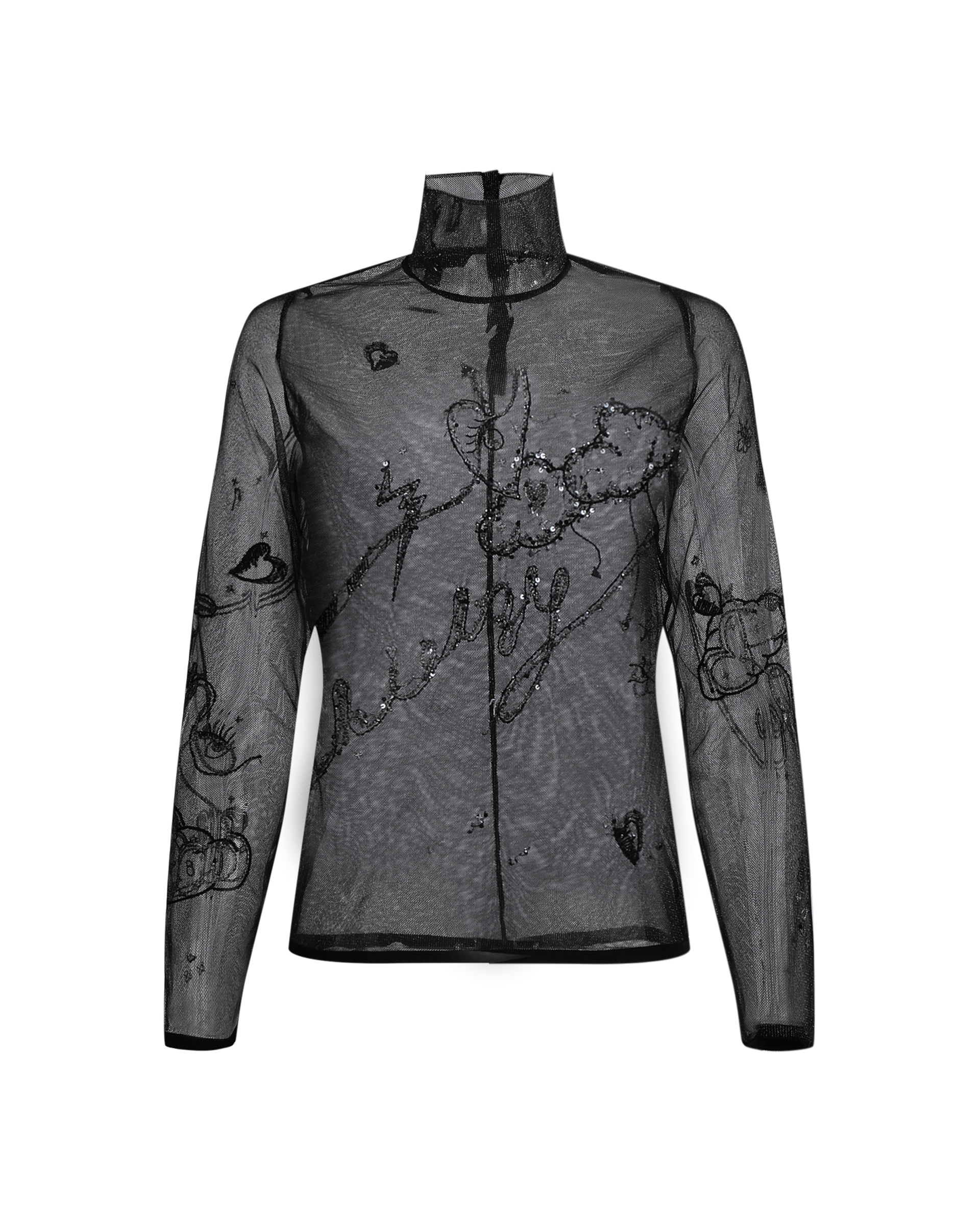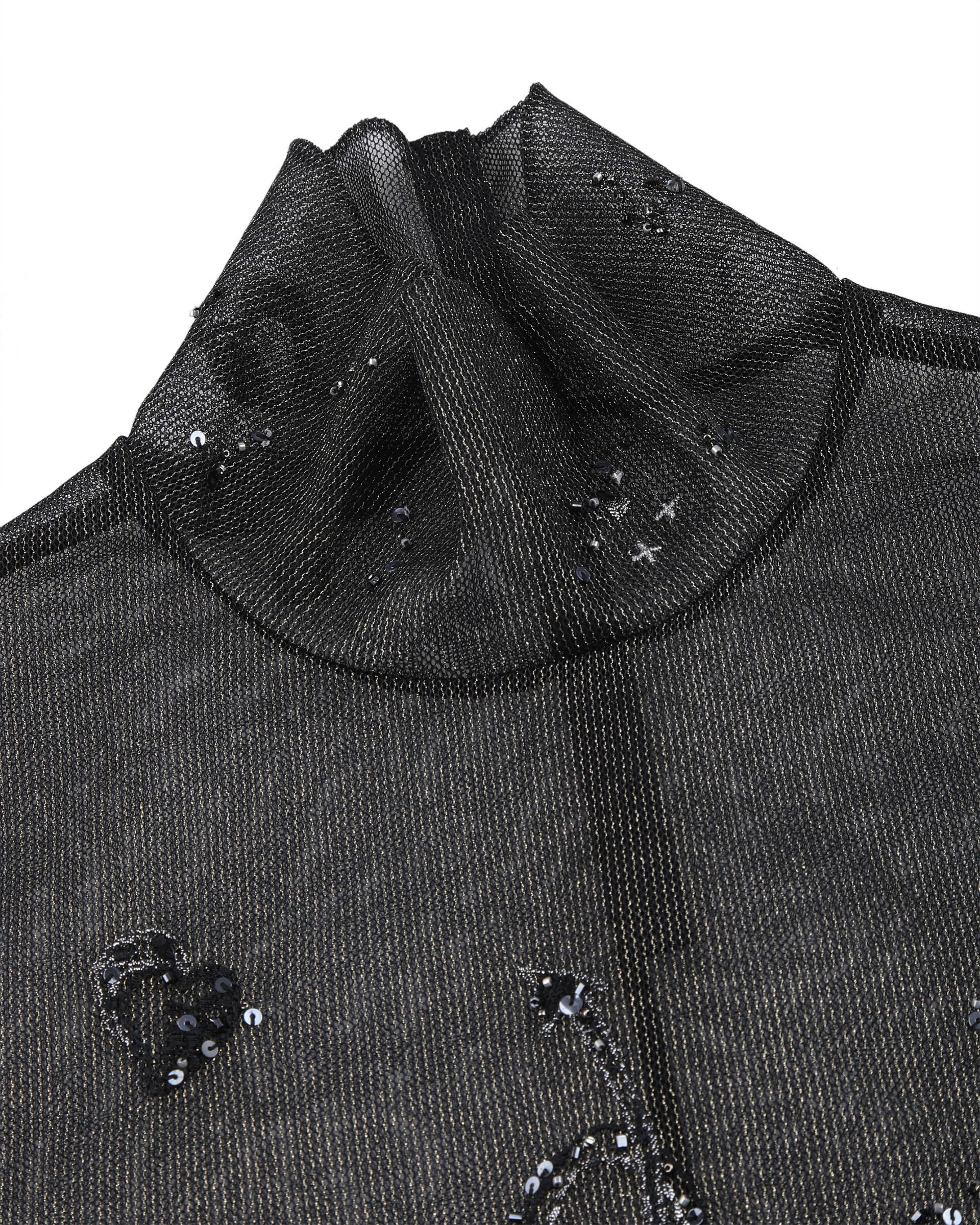 This top is made from soft tulle with metallic glitter. The exclusive pattern is presented by beading embroidery,together with the slim silhouette, this top is chic and refreshed. This piece could be a stylish essential to match all your basic item to have a cool metropolitan look.