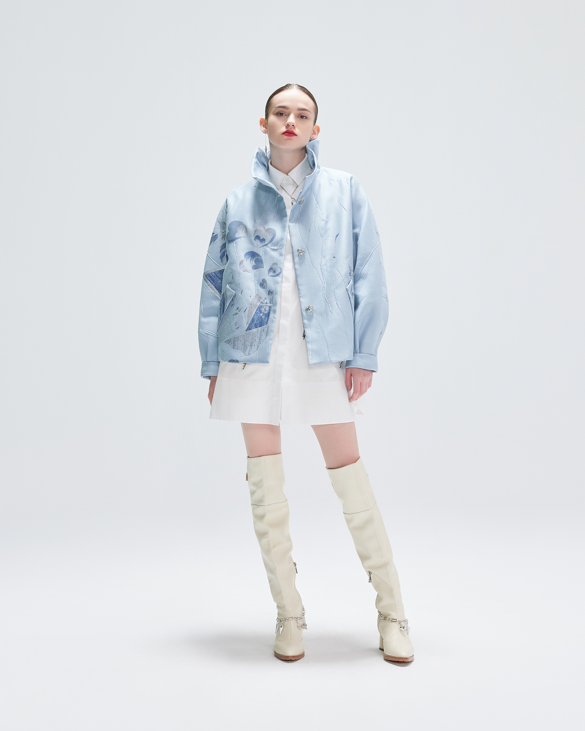 This jacket is tailored from exclusive jacquard. The loose silhouette delivers a casual flair to this piece. The girly grand collar together with the sporty covered pockets made this jacket elegant but cool and it could be paired with all your off-duty ensembles.