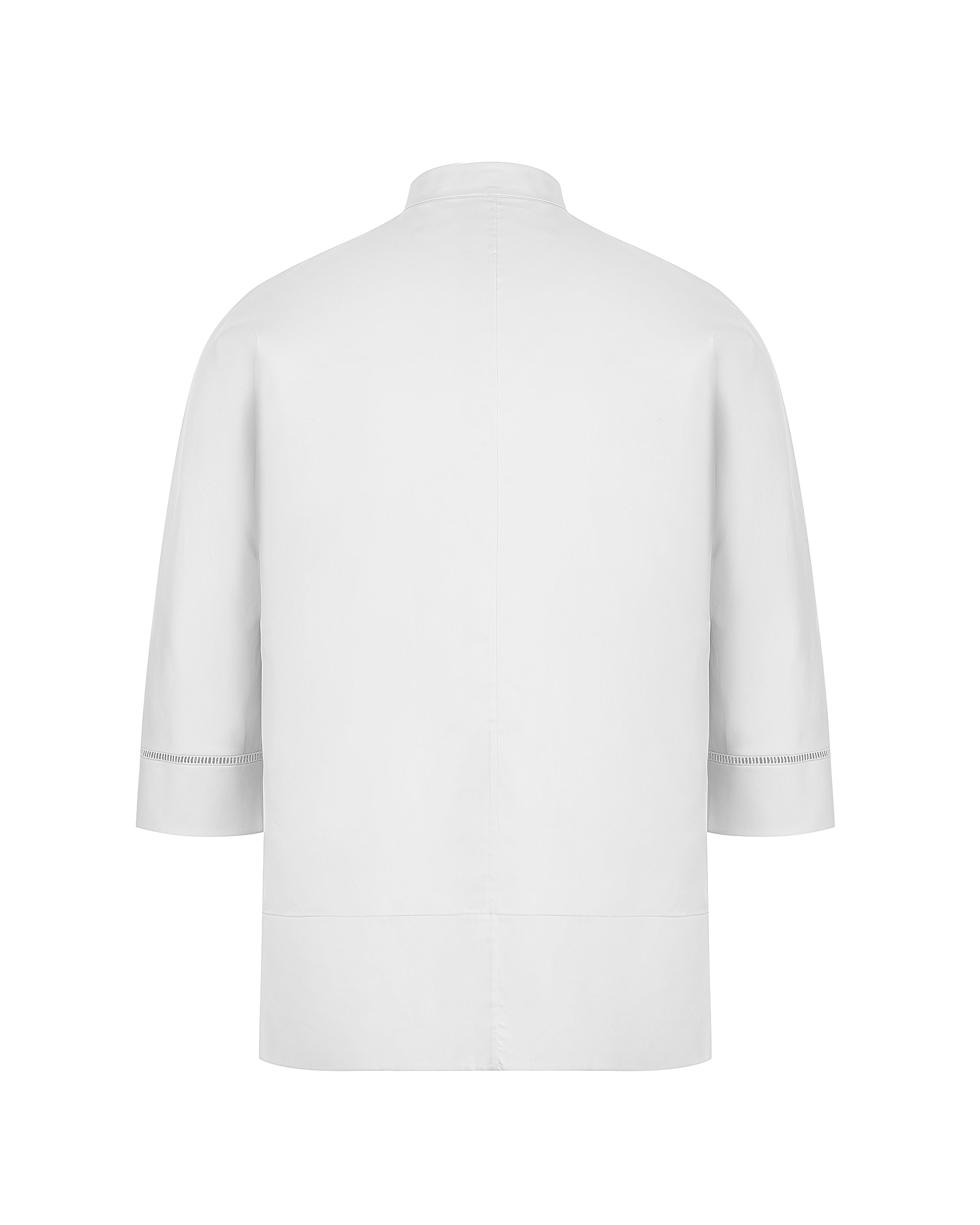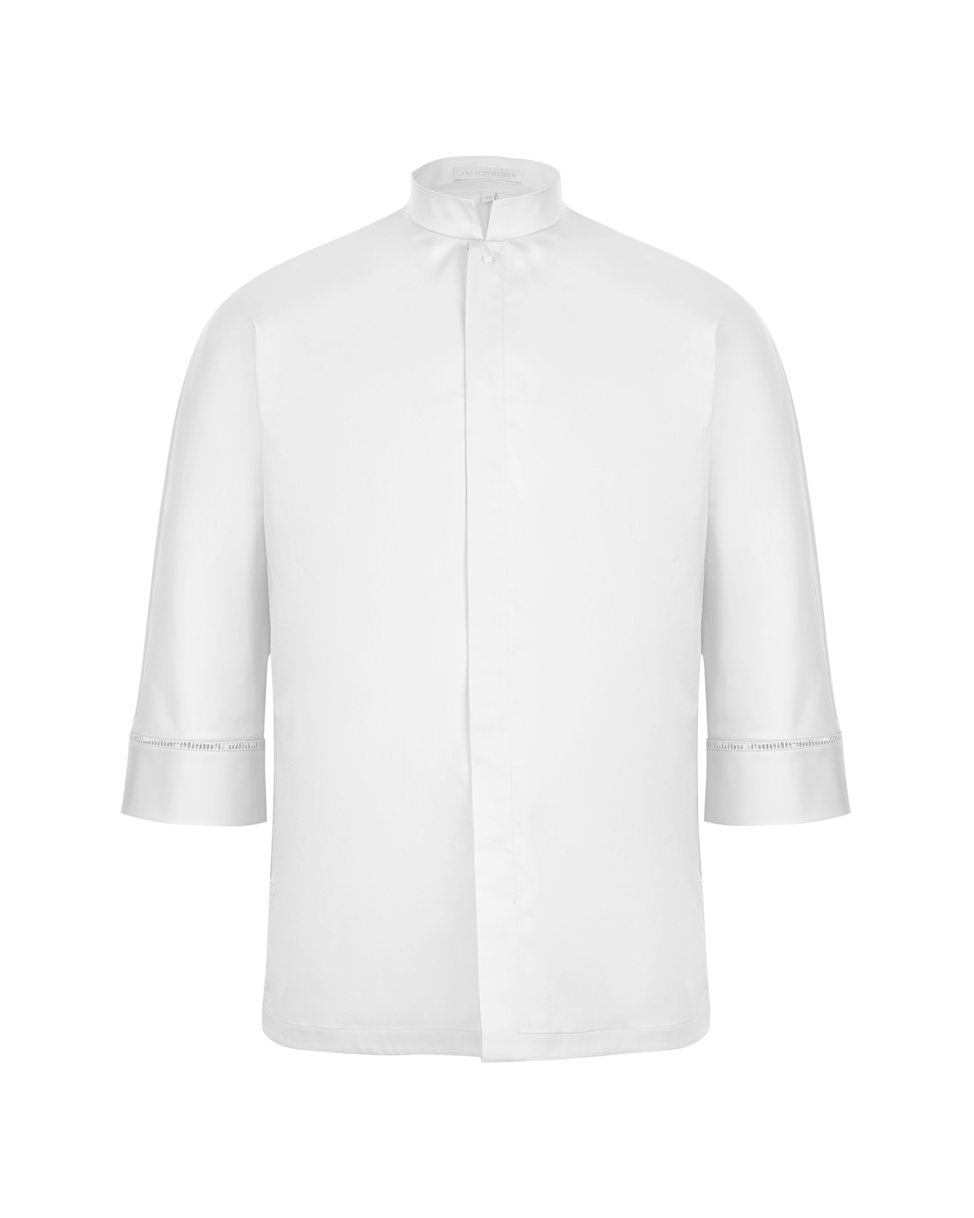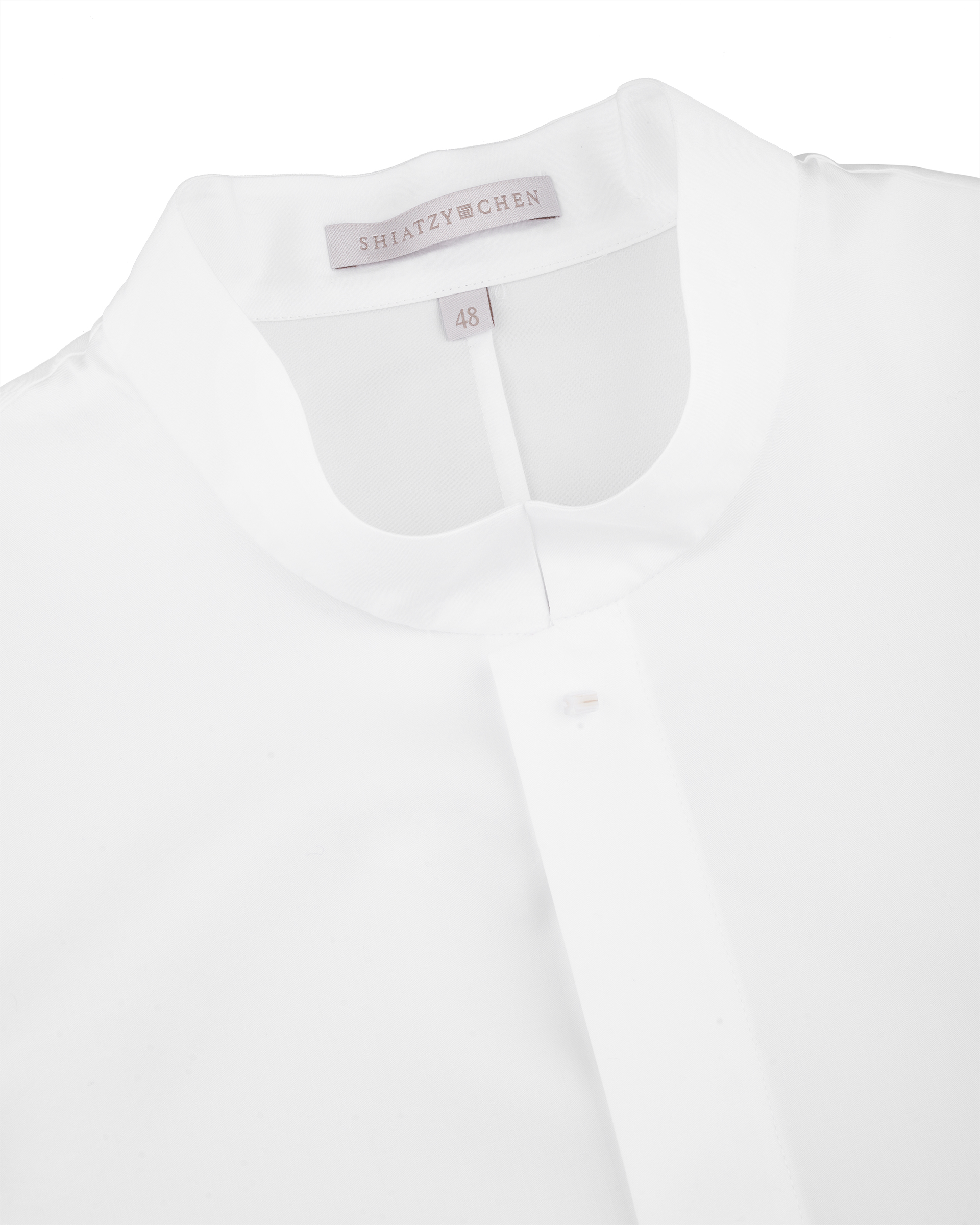 This shirt is tailored in relax silhouette. The fine cotton fabric glints itself with melting texture. Detailed with mandarin collar as a seasonal touch. Wear it with trendy loose shorts to have a chic casual look.