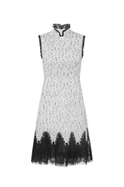 Lace Panelled Mandarin Collar Midi Dress