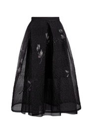 Embroidered See-Through Midi Skirt