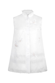Embroidered Mandarin Collar Organza Vest