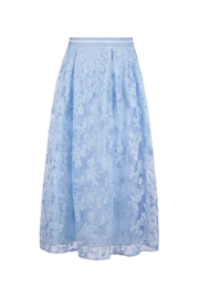 Lace Panelled Embroidered Organza Midi Skirt