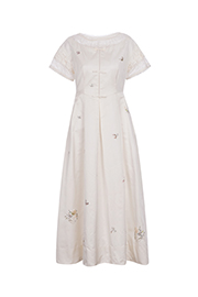 Voice Collection Mandarin Plain Dress with Floral Buttons