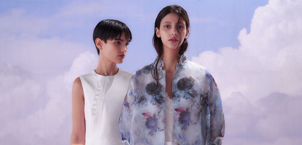 Voice Collection Embroidery Silk Coat with Standing Collar