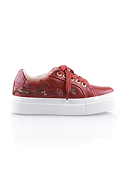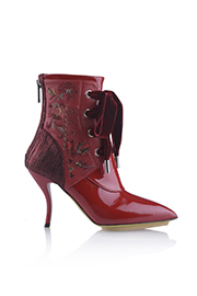 Glam Rock Collection Dark Red Embroidered Patent Leather Ankle Boots